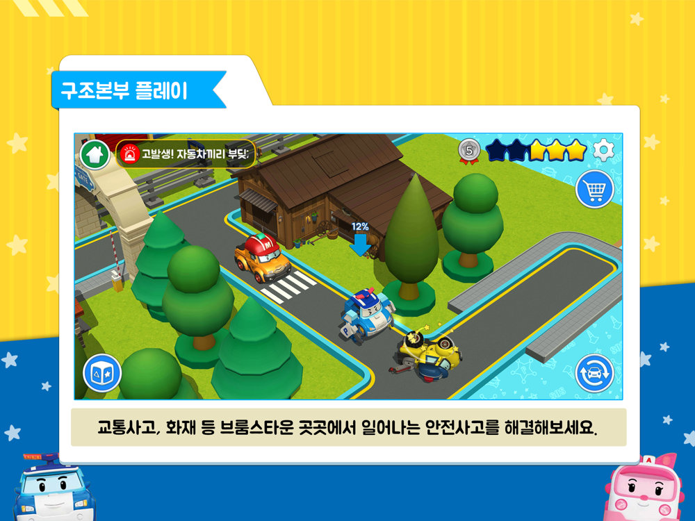 Tip 3. 로보카폴리 구조대 출동! 사고 현장으로 구조대를 이동하여 화재(불)도 진압하고 위험에 처한 친구를 도와주세요.