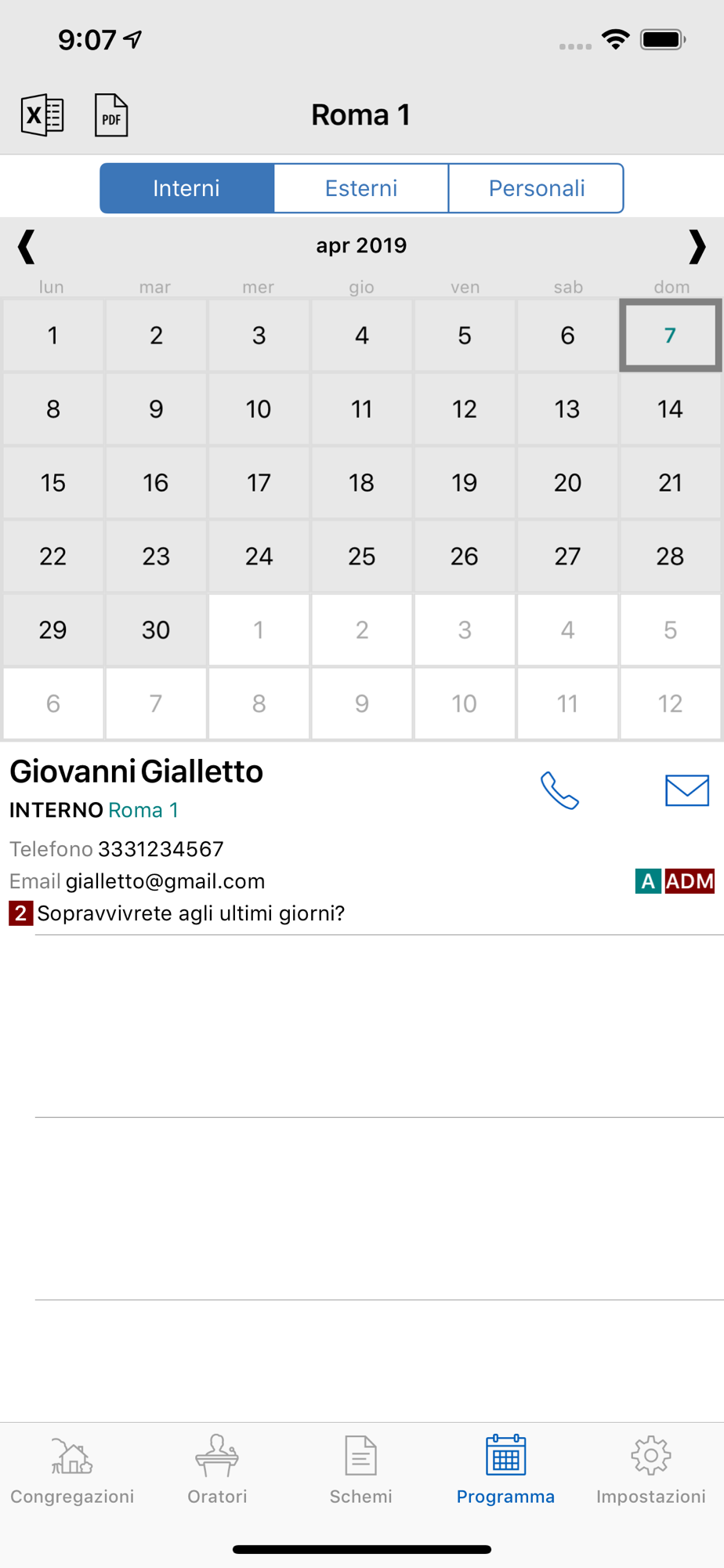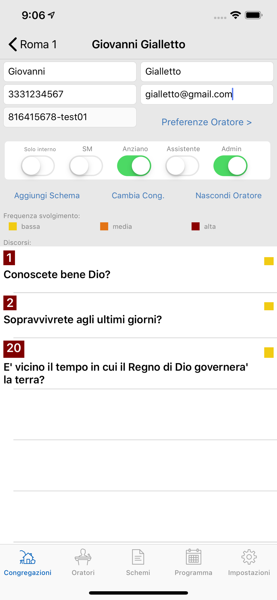 Nominativo, numero di telefono, indirizzo email ed elenco degli schemi posseduti sono utilizzati dai coordinatori al fine di stilare il programma dei discorsi e agevolarne la gestione.