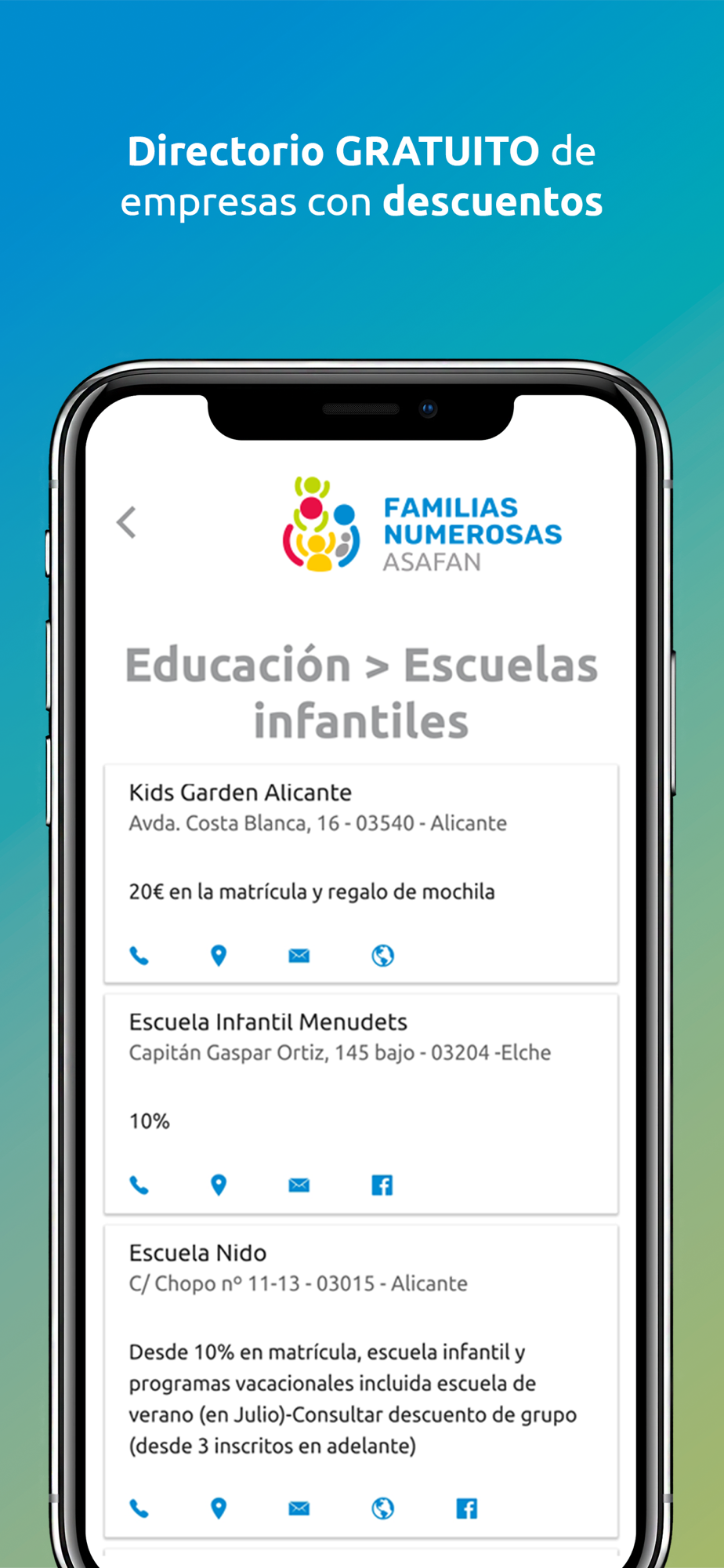 Descuentos para familia numerosa geolocalizados, ayudas, becas y toda la actualidad. Descubre la nueva app de ASAFAN, Asociación Alicantina de Familias numerosas. Entidad sin ánimo de lucro e independiente que representa y defiende los intereses de las familias numerosas.