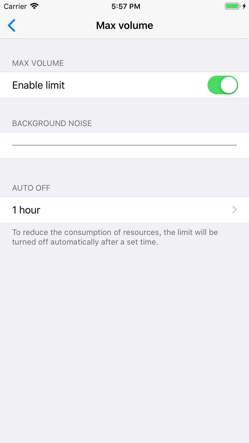 The app works by monitoring the background noise. In loud spaces, the app allows to increase the volume limit a little bit above the set value. In quiet rooms, it sticks with defined value. The app requires access to a microphone. The app can work in the background.