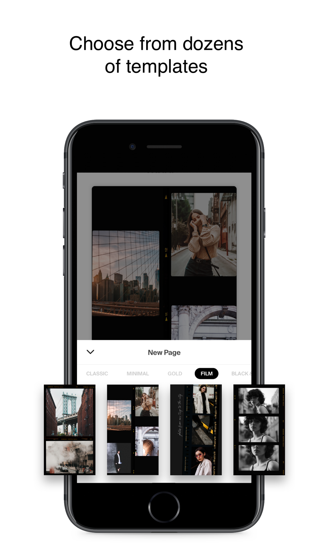 • Add an unlimited number of pages to your story. Each with its own photo template.