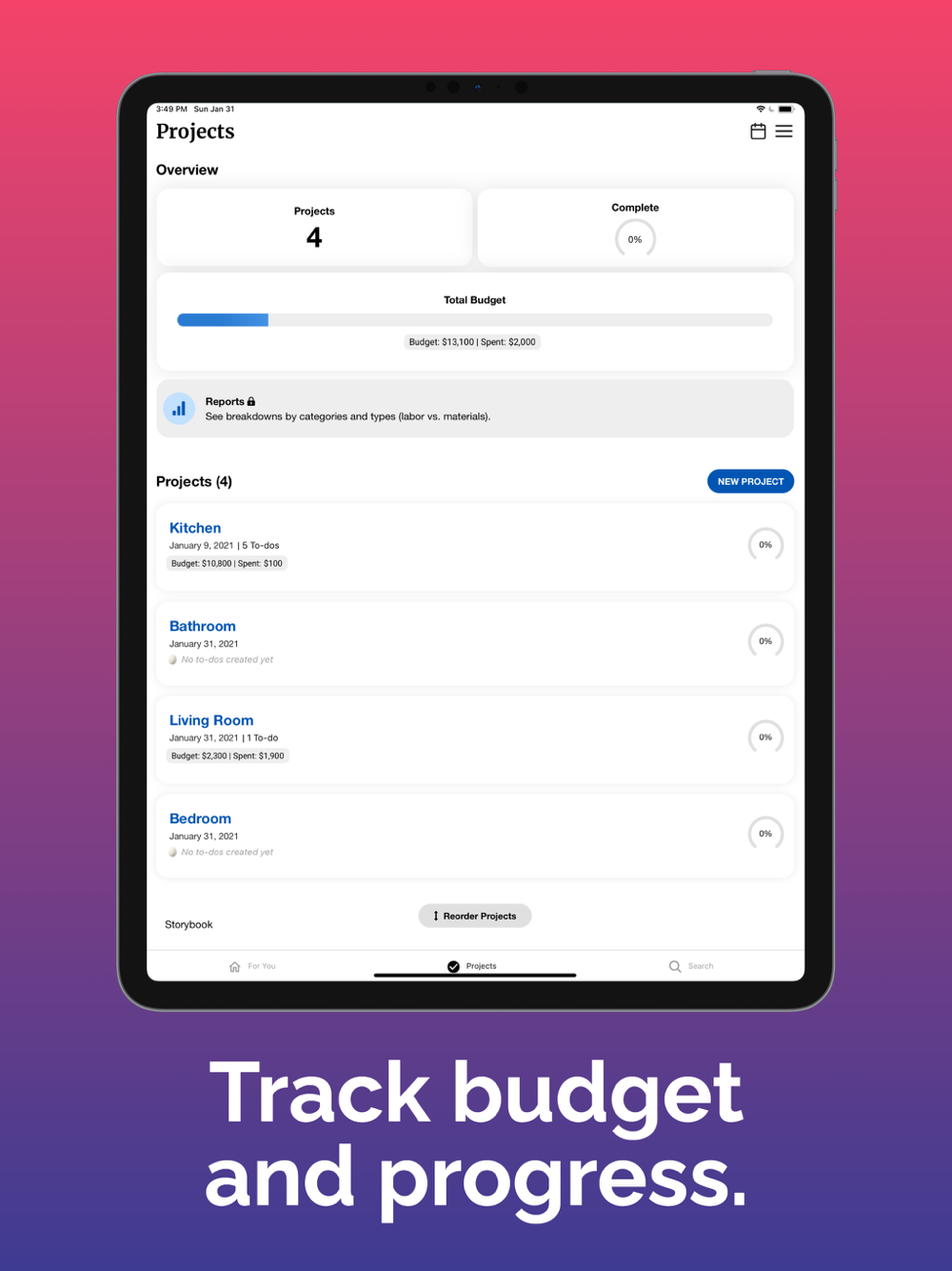 • See the big picture – view budgets and progress for individual tasks, then see your budget summed at the project and home level