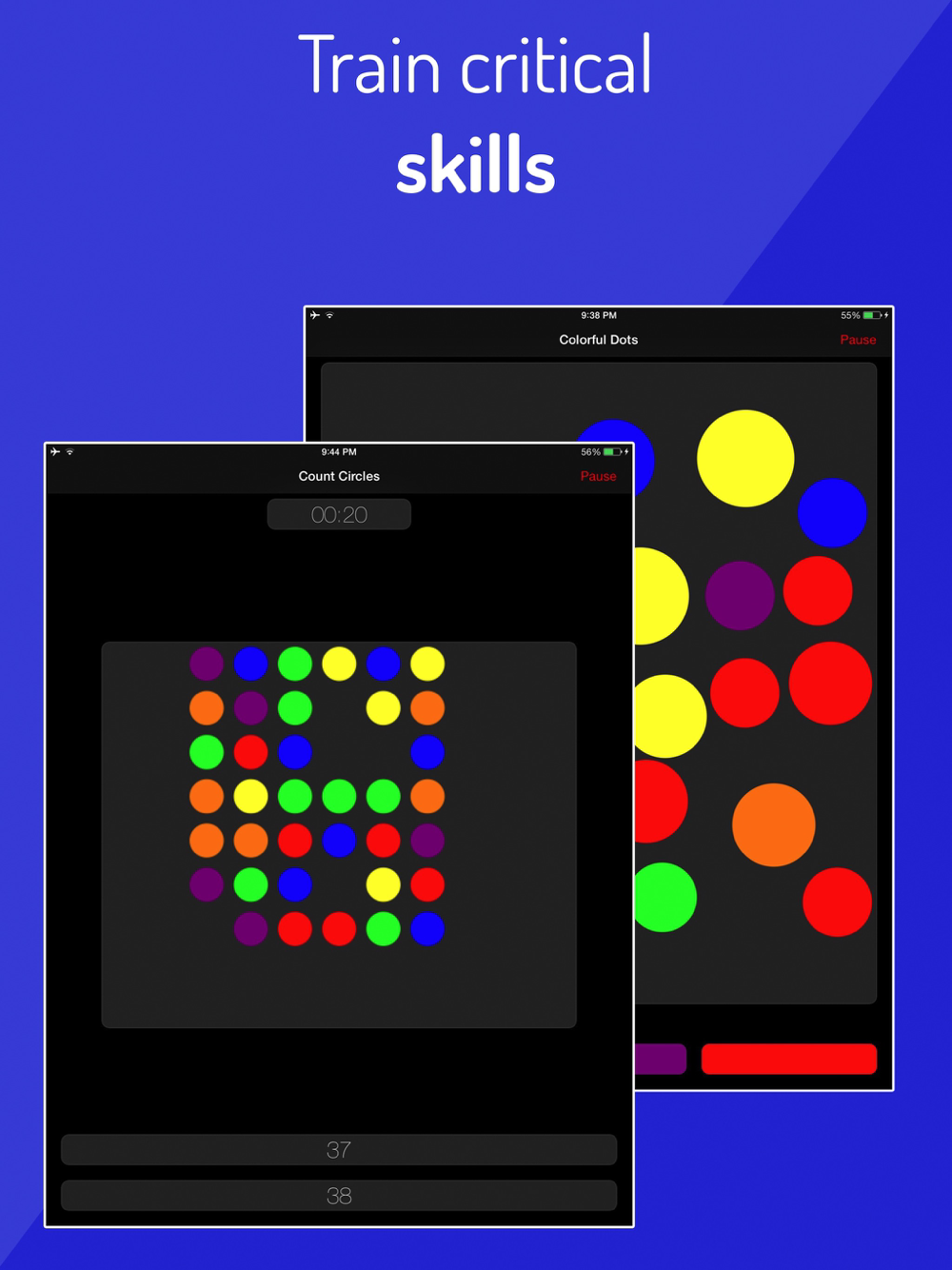 Train your memory, focus, logic and reaction skills with fun and challenging games and personal workouts. 15 games and auto-adapting difficulty levels give you not only endless fun but also help to improve your brain skills greatly.