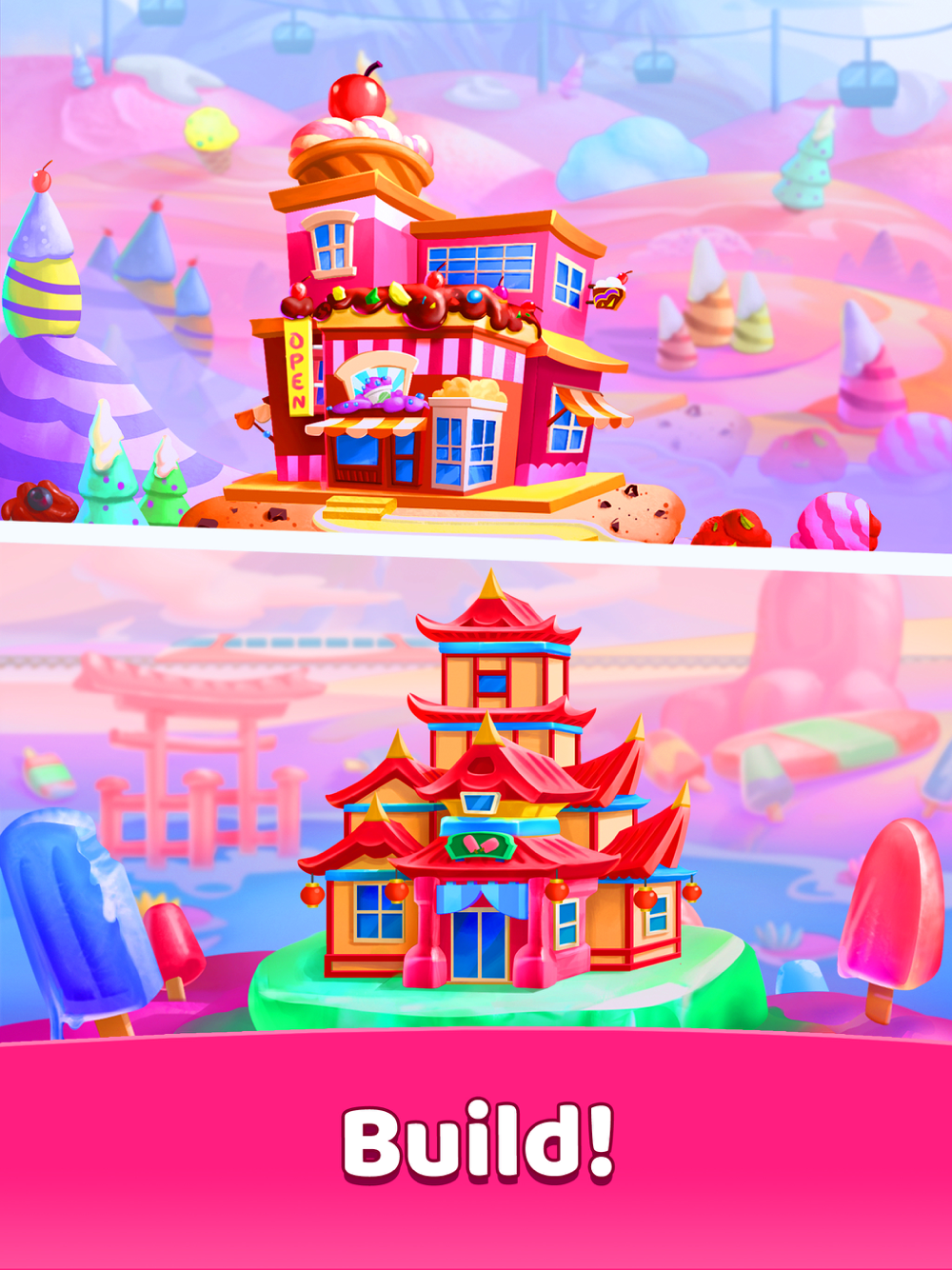 - Sugar Rush: Unlock beautifully themed candy lands!