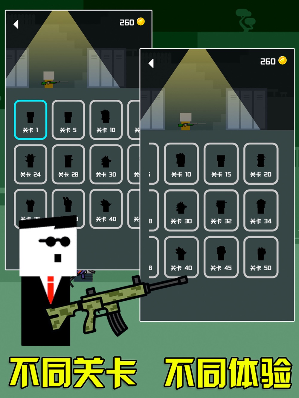 每款枪支的功能作用都不一样,不同的关卡还有不同的人物皮肤。非常休闲好玩,