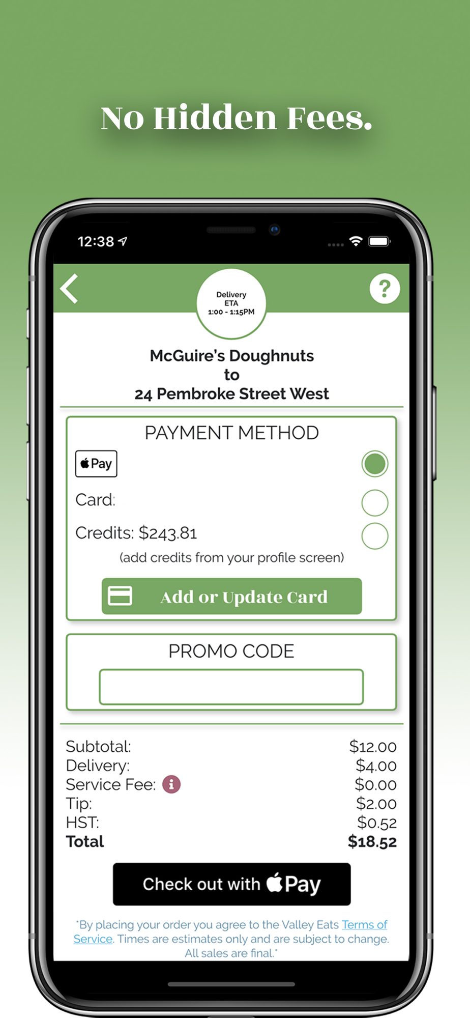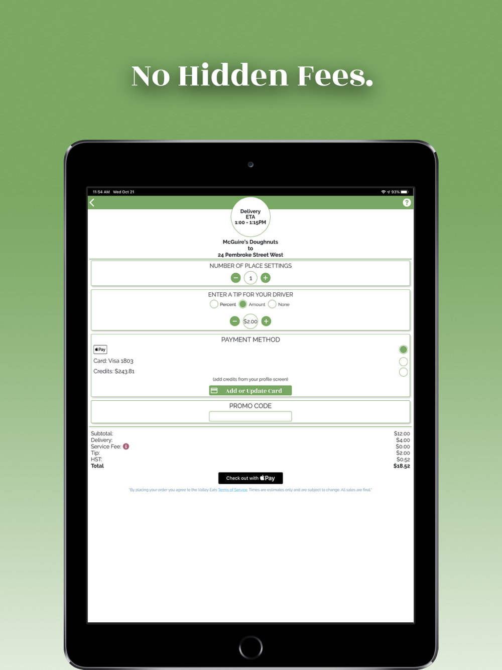 - Multiple payment options: CC, Visa/Mastercard Debit, Apple Pay, and preloaded credit cards