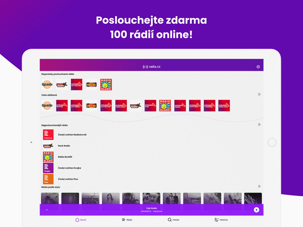 Nabízíme nejlepší kvalitu poslechu v AAC 128kbit s možností úspory dat (formát AAC64).