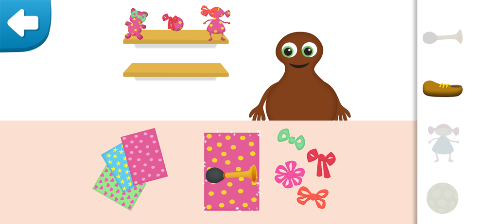It is time to arrange a party with Babblarna! Help Bibbi to pick flowers, wrap gifts with Babba, bake a cake with Doddo, set the table with Dadda, cut out partyhats with Bobbo and blow balloons with Diddi. But who is the party guest, you think?