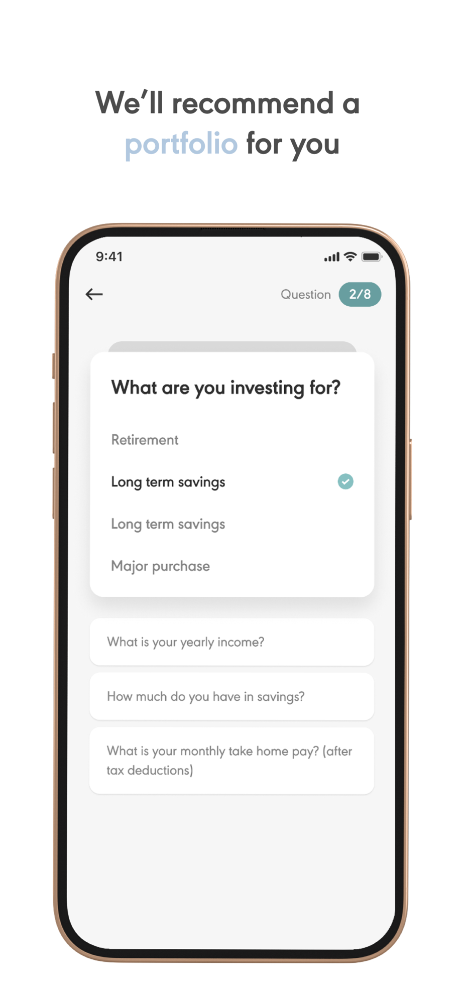 Signing up is easy. Download our app, take the risk assessment questionnaire and make your deposit to join thousands of clients who are investing for their future.