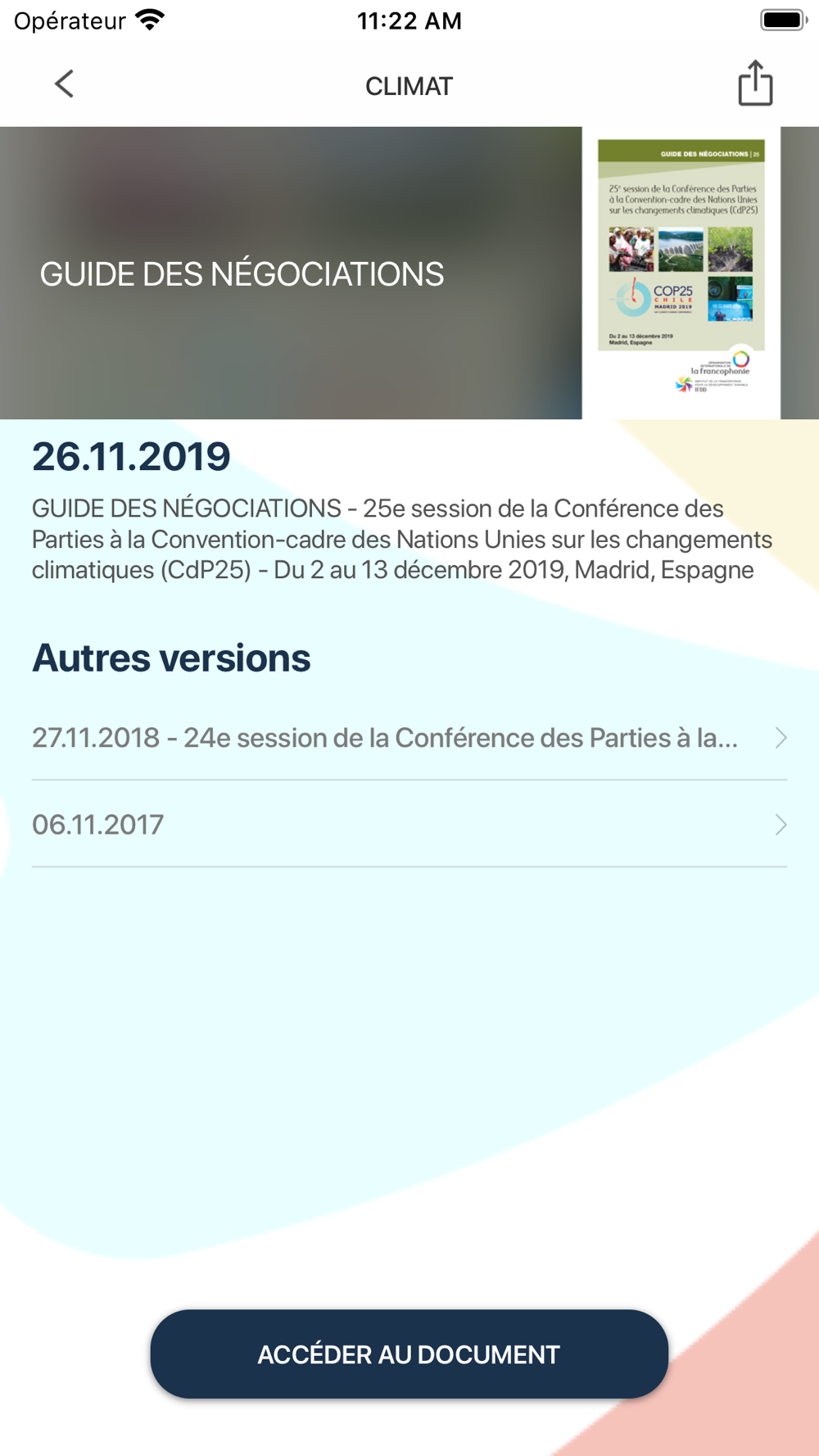 The Institut de la Francophonie pour le développement durable (IFDD - Institute of the French-speaking world for sustainable development), a subsidiary body of the Organisation internationale de la Francophonie (OIF - International Organisation of the Francophonie), has been preparing and publishing the Guide to the Negotiations and its Summary for policymakers since 2006, to support French-speaking delegates when attending international negotiations on climate change, biodiversity and desertification.