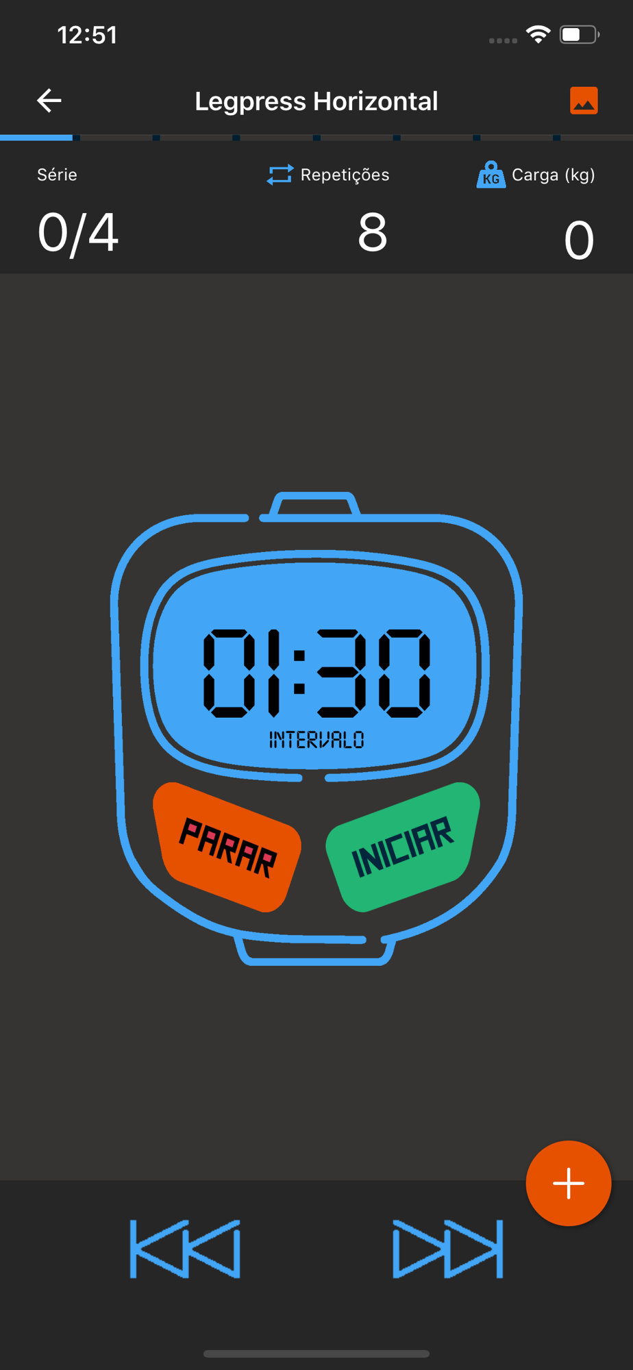- Treinar com o nosso "Treinador Virtual" que te mostra como fazer cada exercício da ficha, cronometrando seu tempo de descanso e te mostrando a forma de execução através de imagens e vídeos.