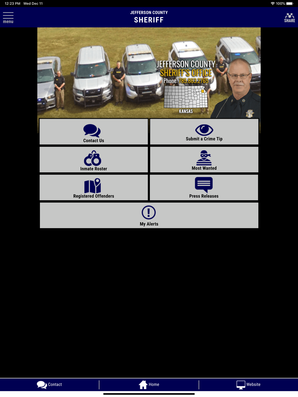 The app has public information for press releases, inmates, most wanted and registered offenders. Crime tips and contact us messages can be sent to the S.O.