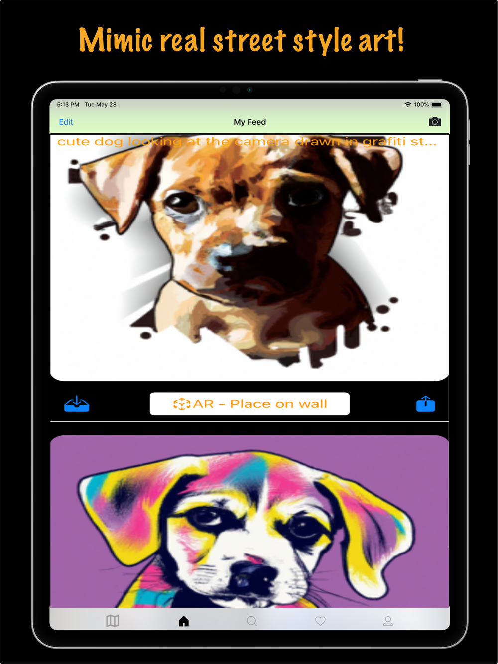 Use the cool new augmented reality (AR) feature to see how street art or other art from your photo library would look on your wall at home or in the street. Then contact the artist to buy a print or commission them for your premises.