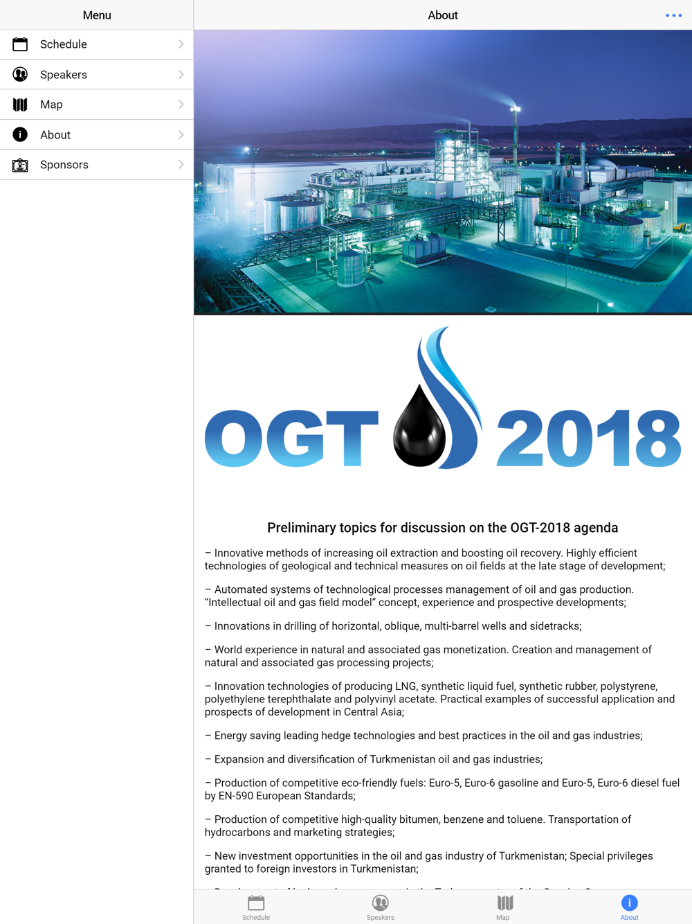 «OIL AND GAS OF TURKMENISTAN» has established itself as an effective business platform for developing and strengthening mutually beneficial partnership relations with Turkmenistan. This event is a unique meeting place for oil and gas industry leaders from all over the world to meet, network and move projects forward.