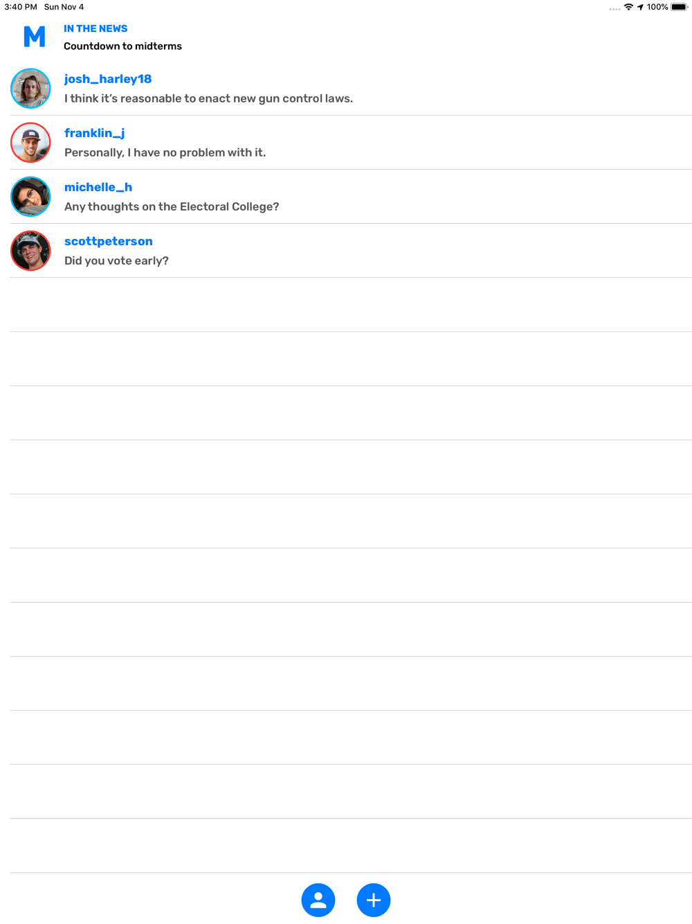 Midway offers a solution. A platform specifically designed for the exchange of ideas through civil discussion, rather than the stoking of further strife. Every detail in Midway is intentional, designed to create a tranquil space to exchange ideas.
