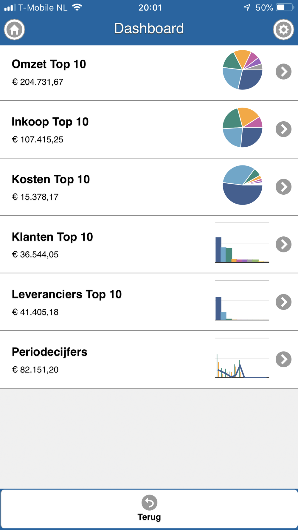 Alles in duidelijke overzichten. Doorklikken tot op detailniveau zoals een PDF. Signaalfunctie voor “af te handelen” zaken.