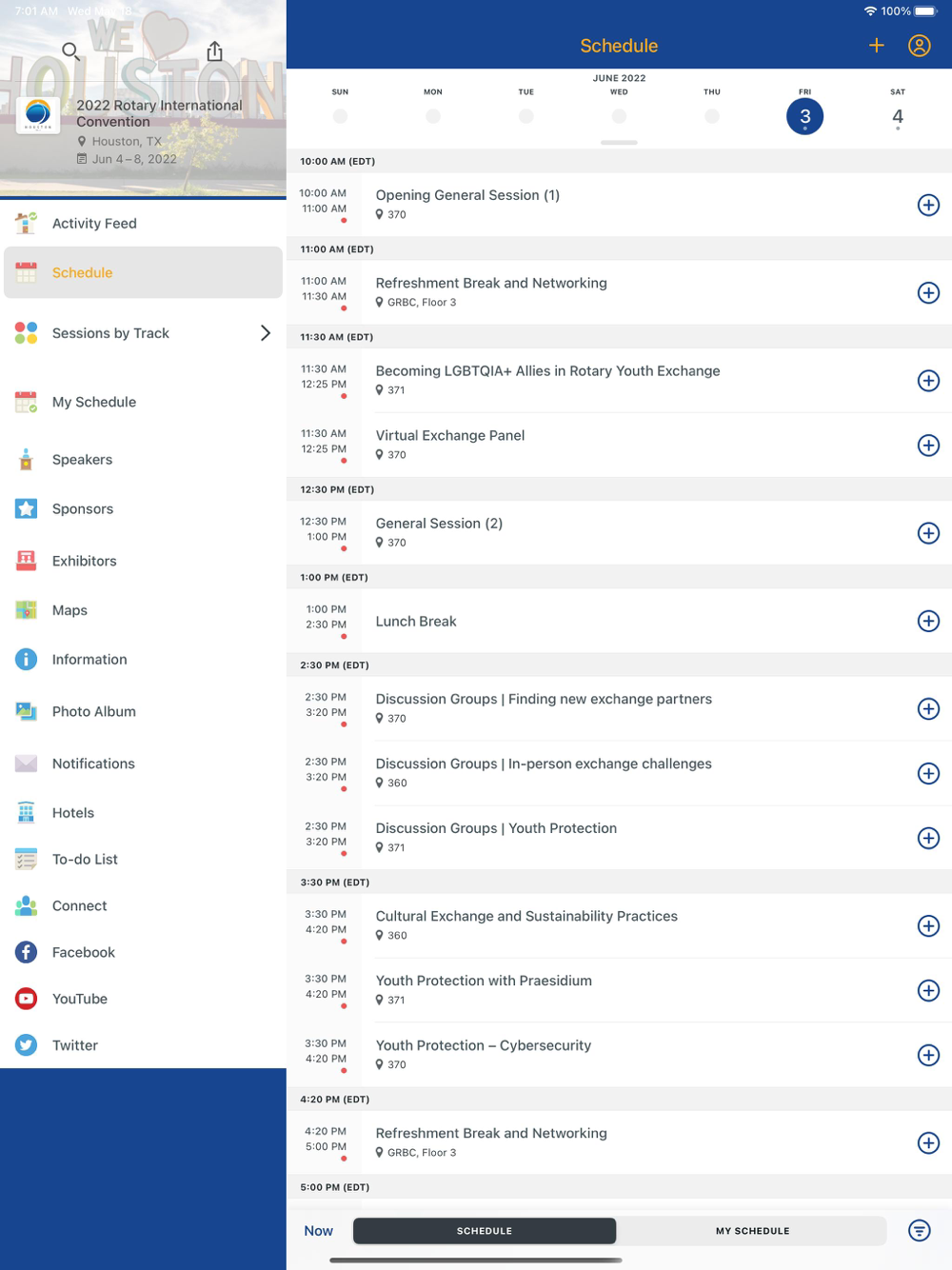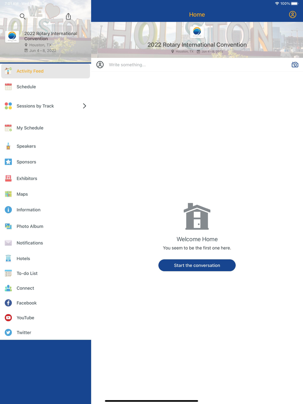 Welcome to the official event app for Rotary International. Use this app to build a personalized schedule, download session resources, and connect with other participants. View transportation and venue maps, read speaker profiles, receive updates, share photos, complete polls and surveys and more. Download the app to begin connecting today.
