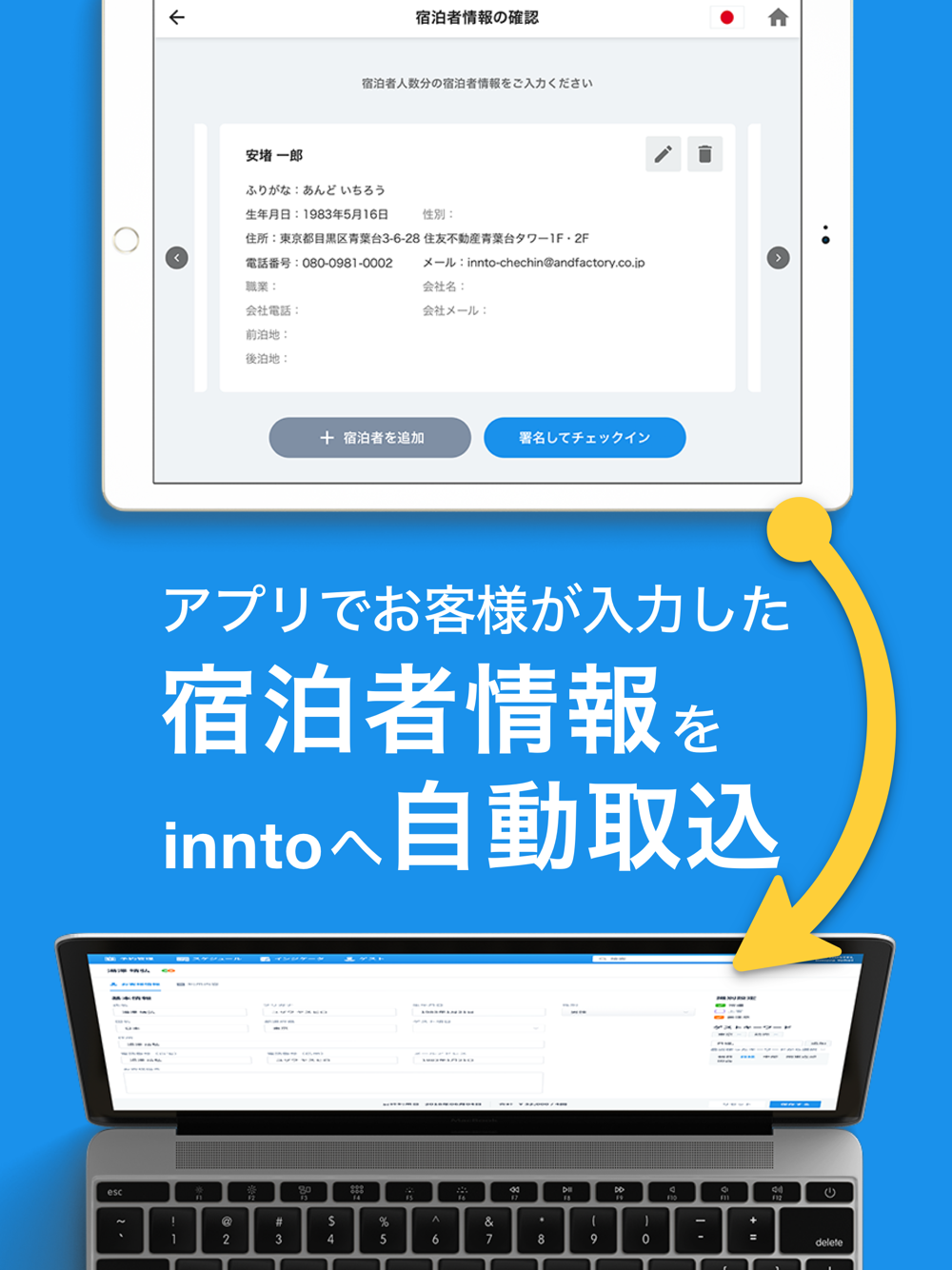 inntoスマチェは、inntoご利用施設様のオプション機能として活用できるスマートチェックインアプリです。