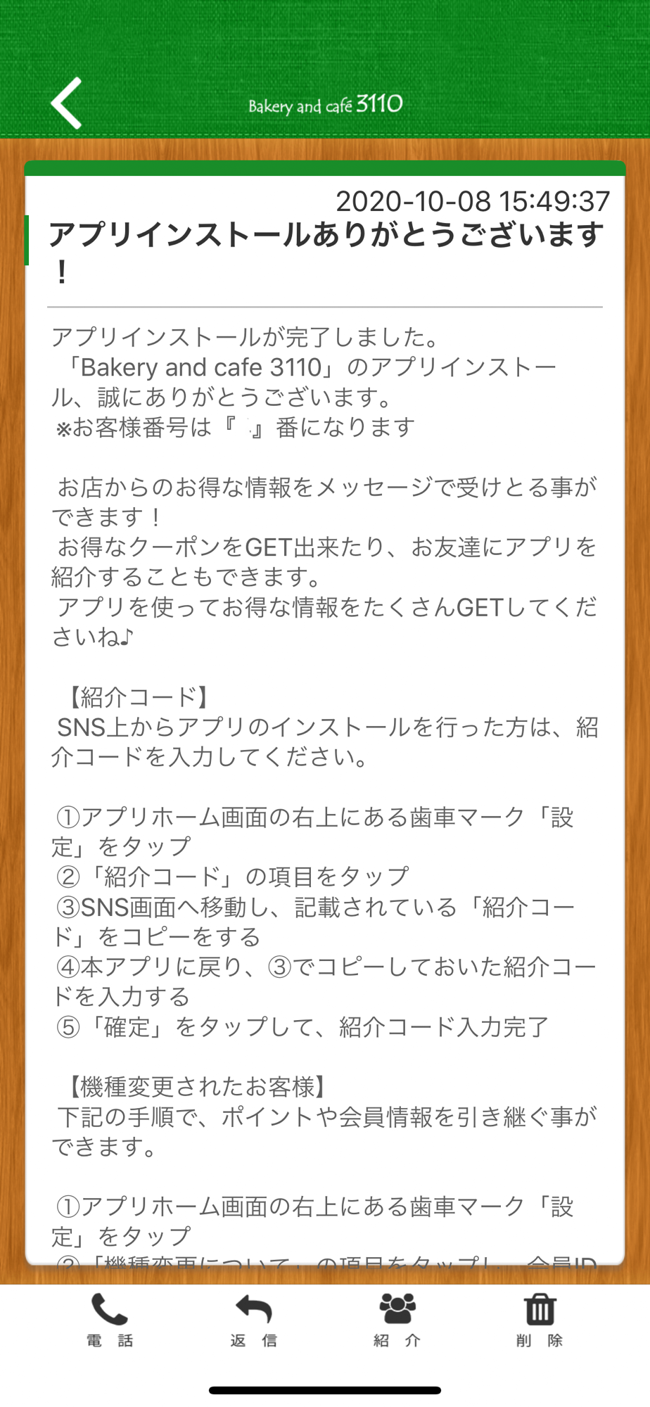 3110のアプリをSNSを通じてお友達に紹介する事ができます。