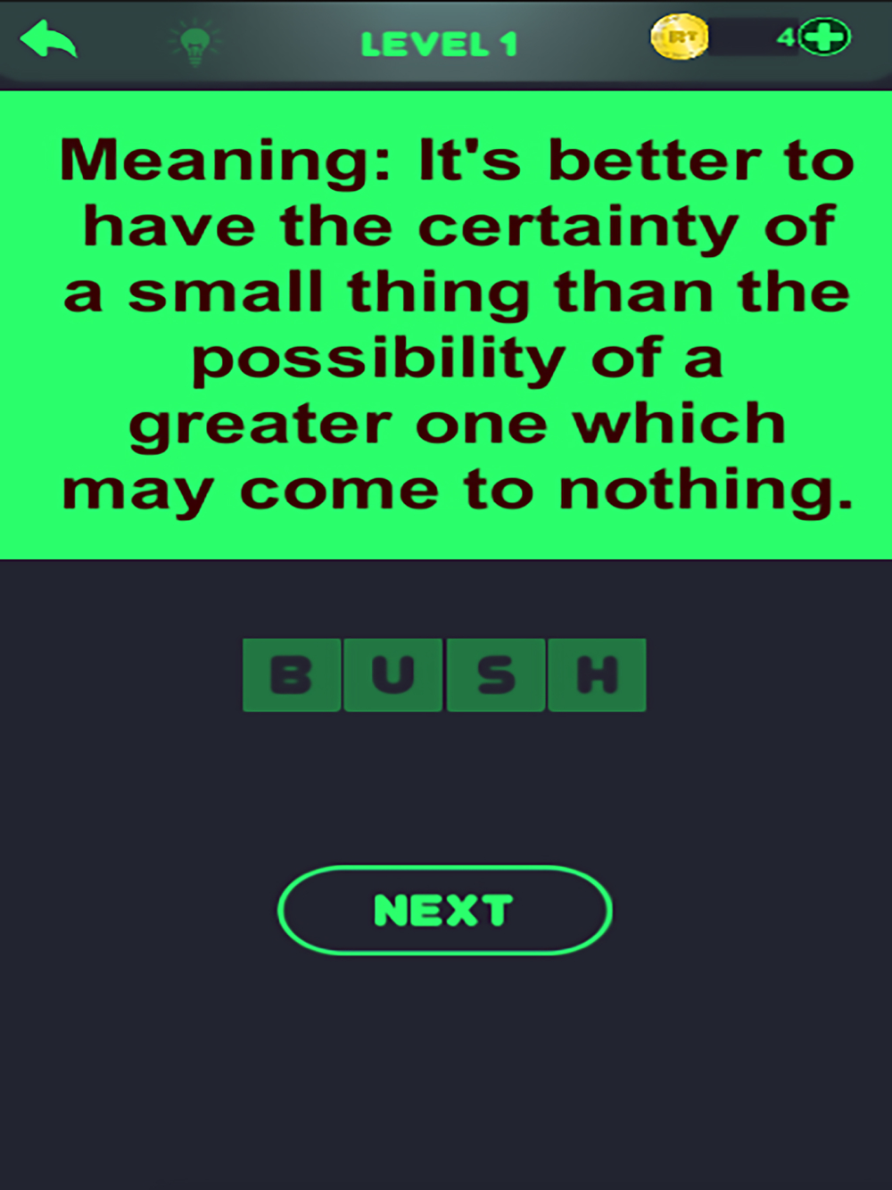 How well do you know proverbs? Find out with this fun app. Sometimes it's hard to understand what the proverb or an idiom implies, the app explains the meaning of each proverb you guess! Enjoy!