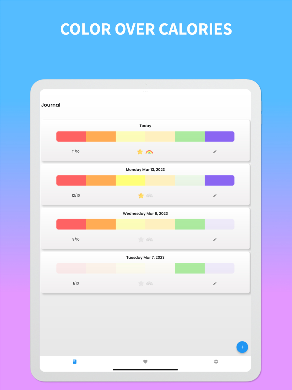 Our app helps you track your daily plant-based food intake and visualize your progress towards optimal nutrition. Unlock unicorn status by eating the rainbow each day or week, and earn gold stars as you reach your goals!