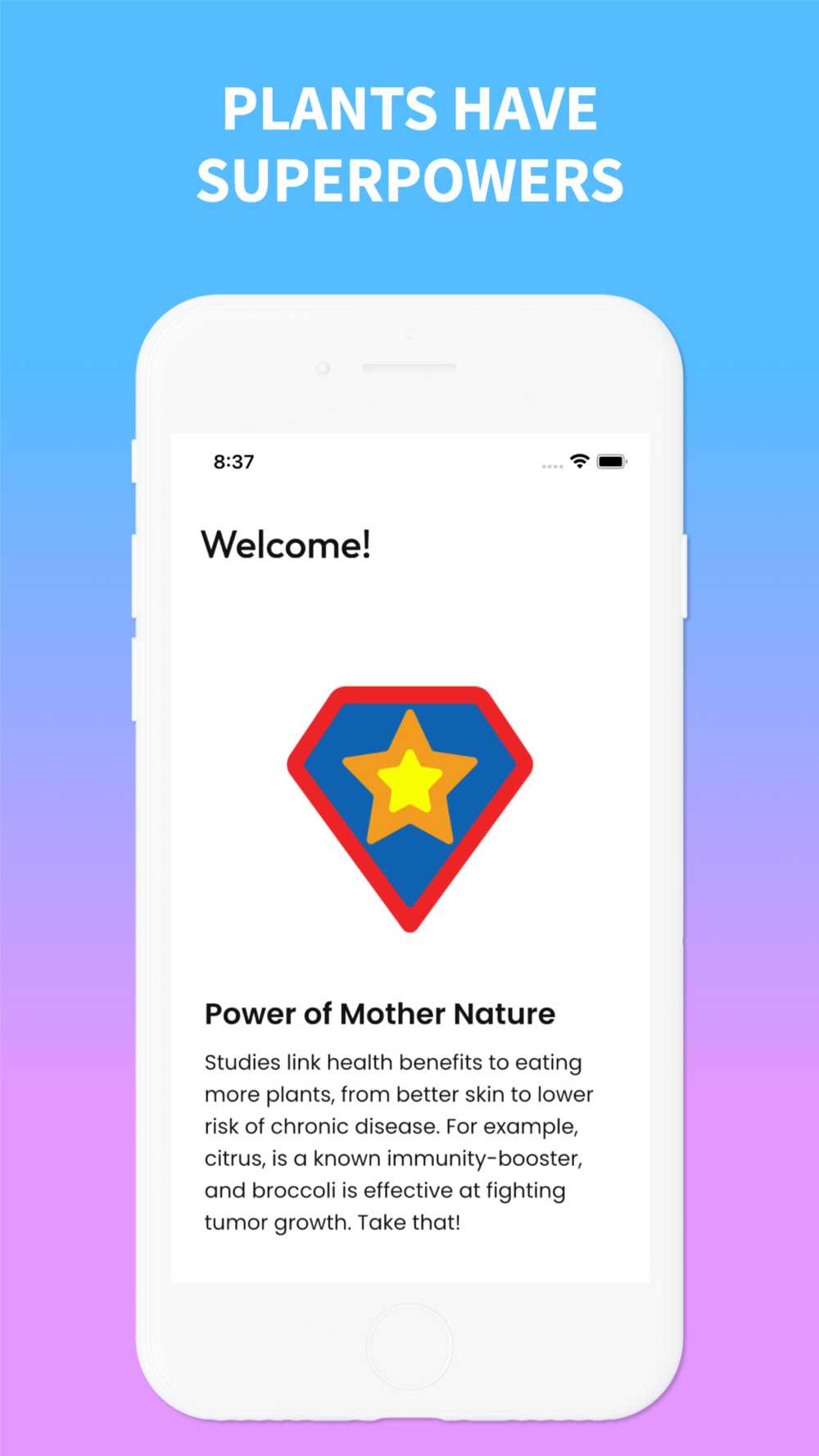 Eating a wide range of plant-based foods has been linked to numerous health benefits, including lower blood pressure, cholesterol, and rates of cancer. Our app makes healthy eating fun and accessible to everyone, with colorful food tracking and nutritionist-approved recommendations.