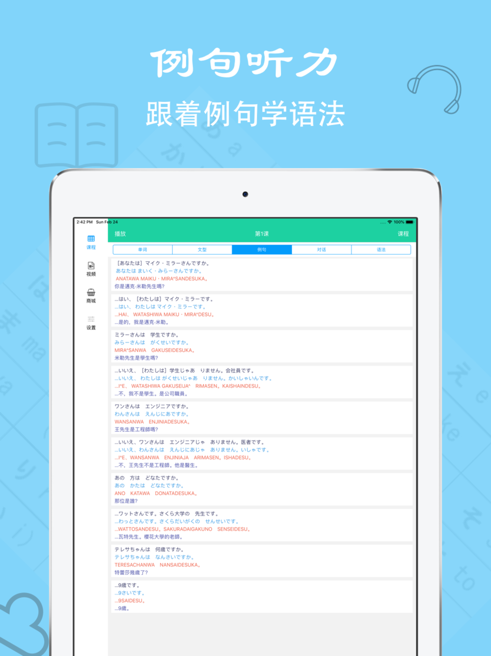大家的日本語,包括了25課初級有聲課程和25課進階有聲教程,包含單詞,句型,會話,語法,全部高清真人發音.