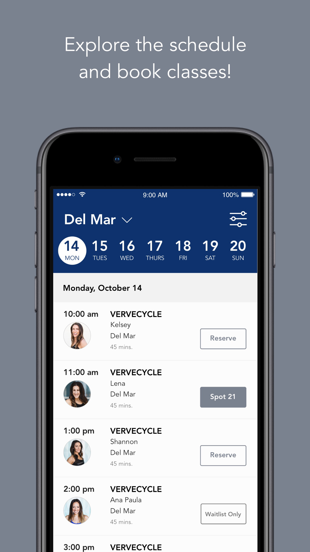 Buy classes, explore instructors, and plan your rides for the week. Sign-ups are live every Monday at 11:00am PST. You can book classes through the following Monday. Book your favorite bike in the studio and get ready to sweat hard, feel good, and live better.