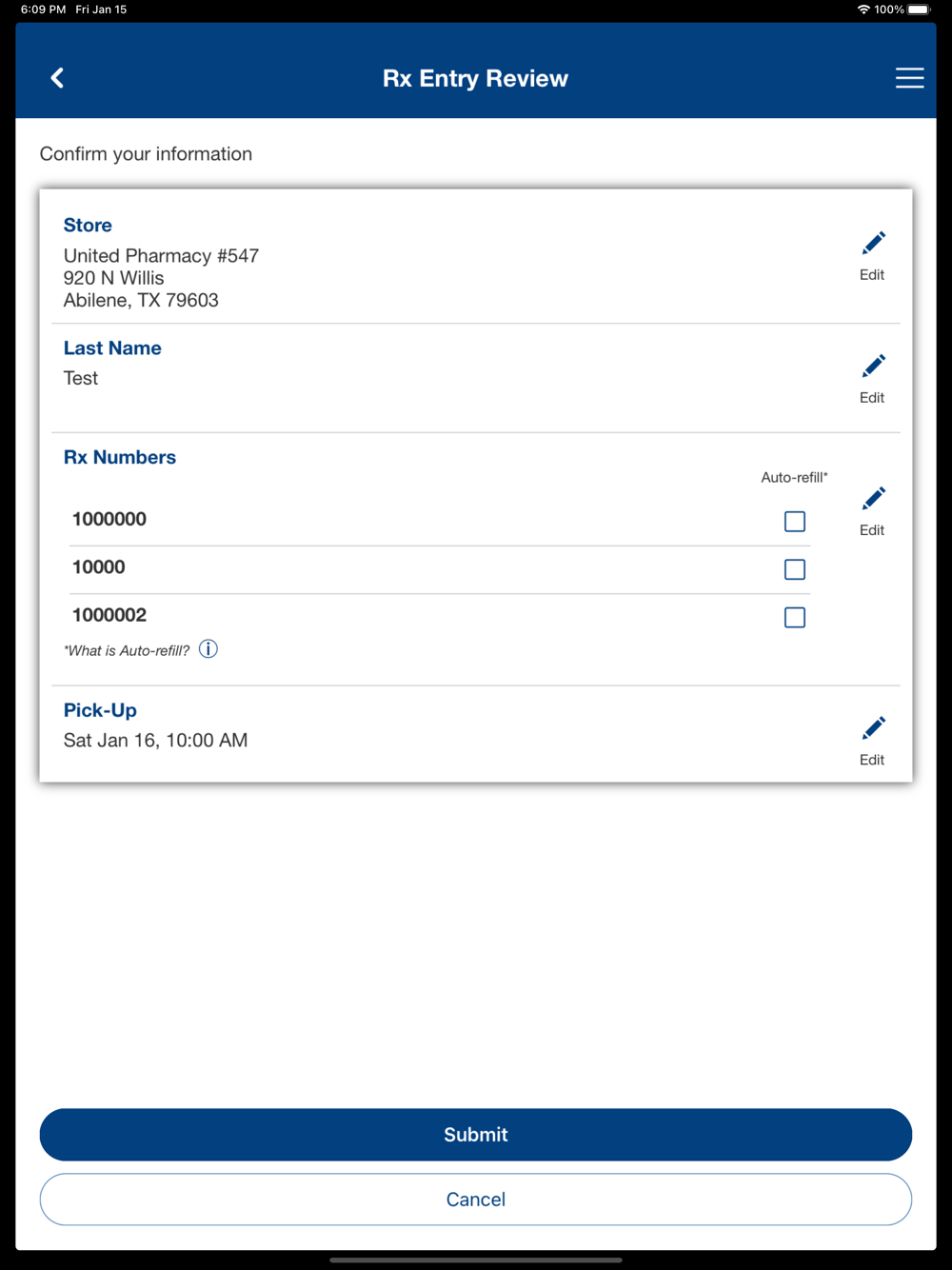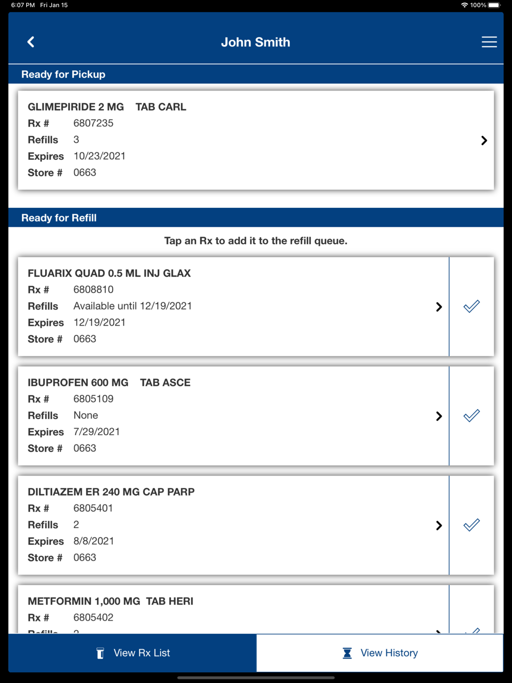 • Refill prescriptions easily; use your camera to scan or enter your Rx number manually