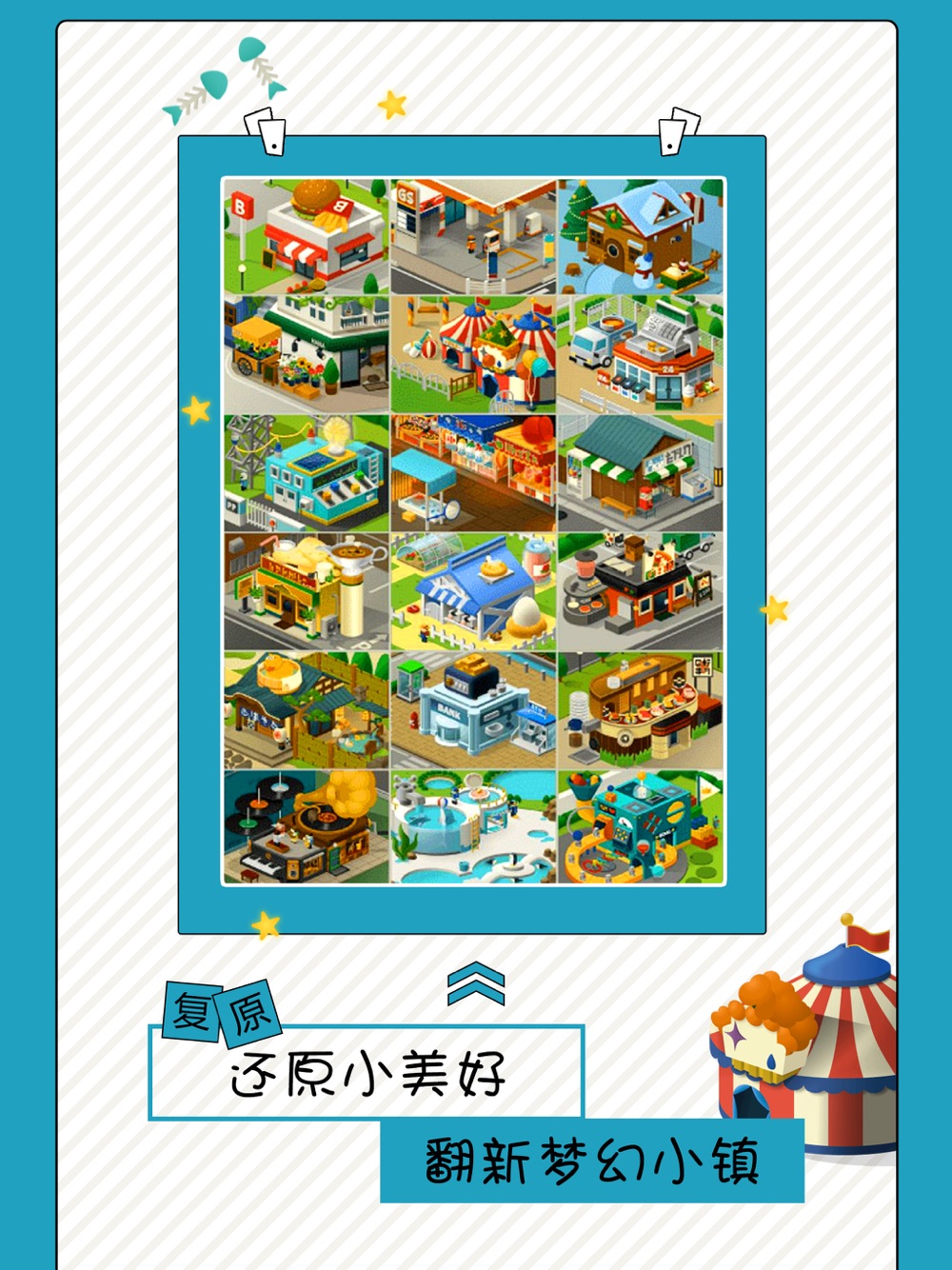 小镇年久失修,作为修复大师的你,找到工具让小镇恢复往日色彩吧~