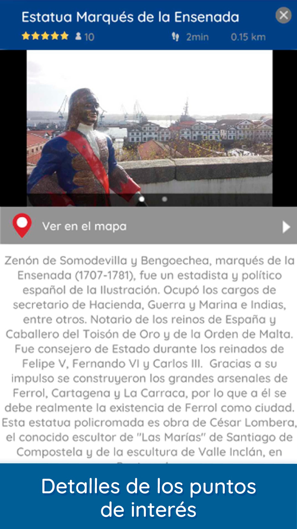 Conforme juegues habrá un narrador que te guiará por el Ferrol de la Ilustración, contándote anécdotas sobre esta ruta histórica: Jorge Juan, uno de los personajes más polifacéticos del s.XVIII en España: matemático y astrónomo, pero ante todo marino. Su ocupación más peligrosa fue espiar en Inglaterra sobre sus técnicas de construcción de navíos por encargo de la Corona española, de hecho, se las ingenió para captar a sus mejores artesanos y constructores de barcos y traerlos a trabajar a España. Tiene una estatua en los Jardines de Herrera de Ferrol.