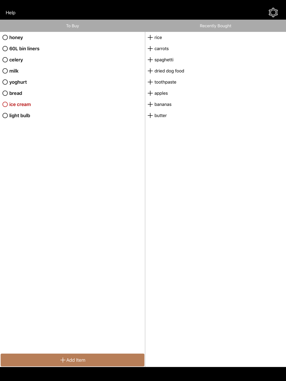 The app is based on the observation that you tend to shop for many of the same regular items. So your most recent items will appear at the top of a second list, ready for you to add them to your shopping list with a single click.