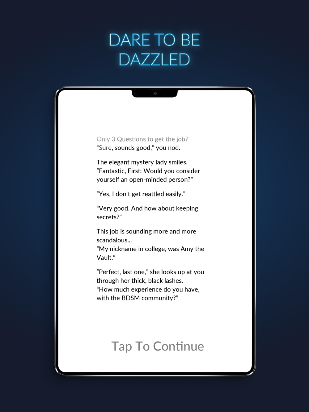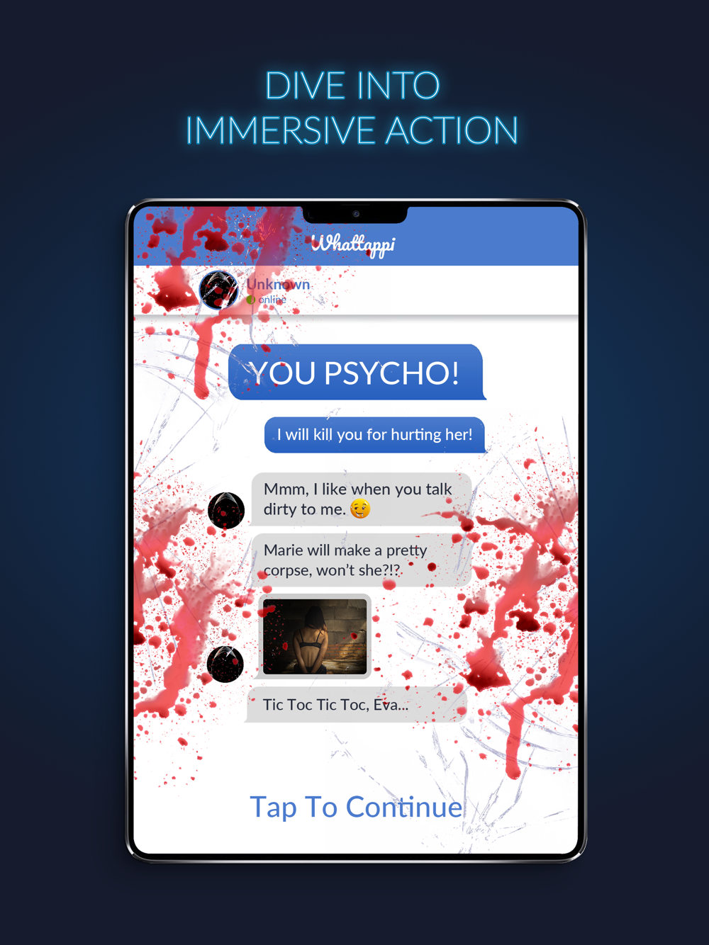 • Experience the story through the protagonist's phone. It takes you through chats, dating apps, and social media, to tell you a story that is more personal, more immersive, and more interactive than a book.