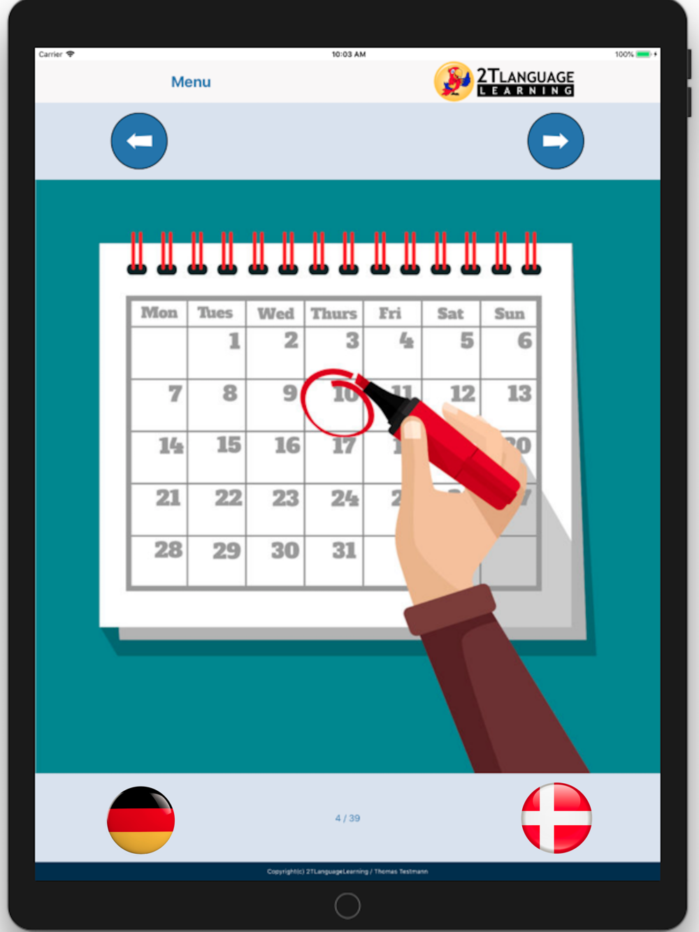 Außerdem lernen Sie Farben, Zahlen, Namen von Körperteilen sowie Zeit und Datum kennen.