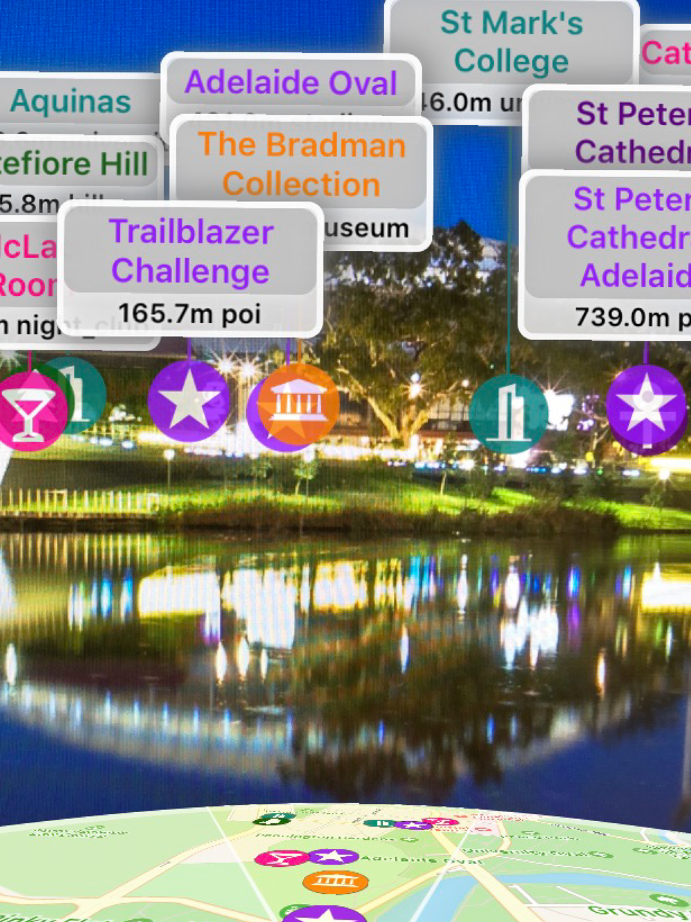 Looksee AR for Adelaide, South Australia is an Augmented Reality (AR) viewer used to find places of interest upto 10km away directly within your phone's camera view and add fun, knowledge and interest to your adventures and tours.
