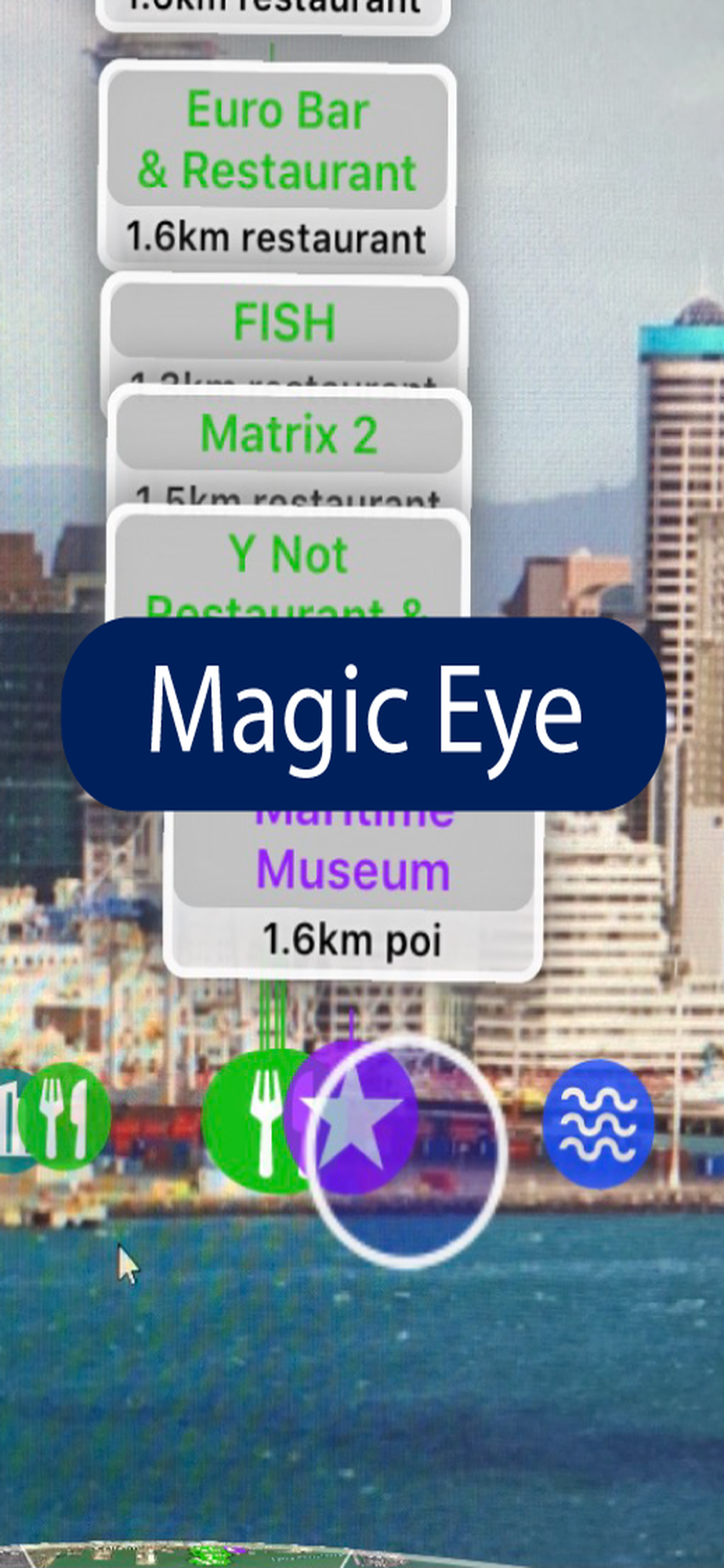 - Video recorder for saving and sharing interesting places on social media (accessed by holding the camera icon for 1 second)