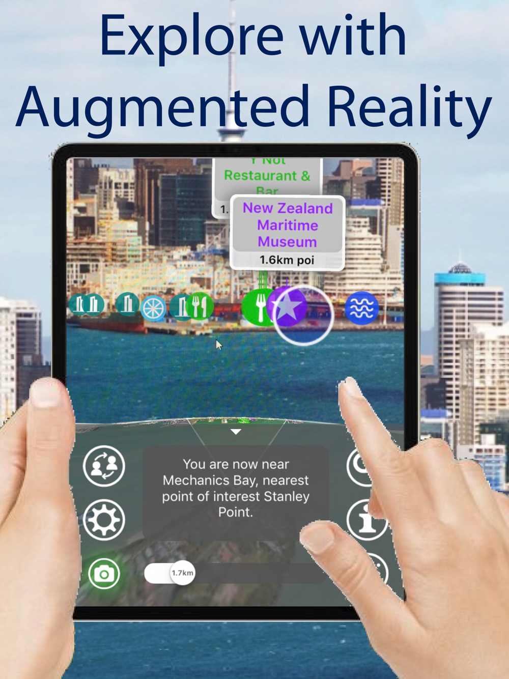 In fact there are around 8,000 places of interest viewable within the App including Waiheke and Rangitoto Islands and of course the many sky scrapers at the harbour downtown including the Sky Tower.