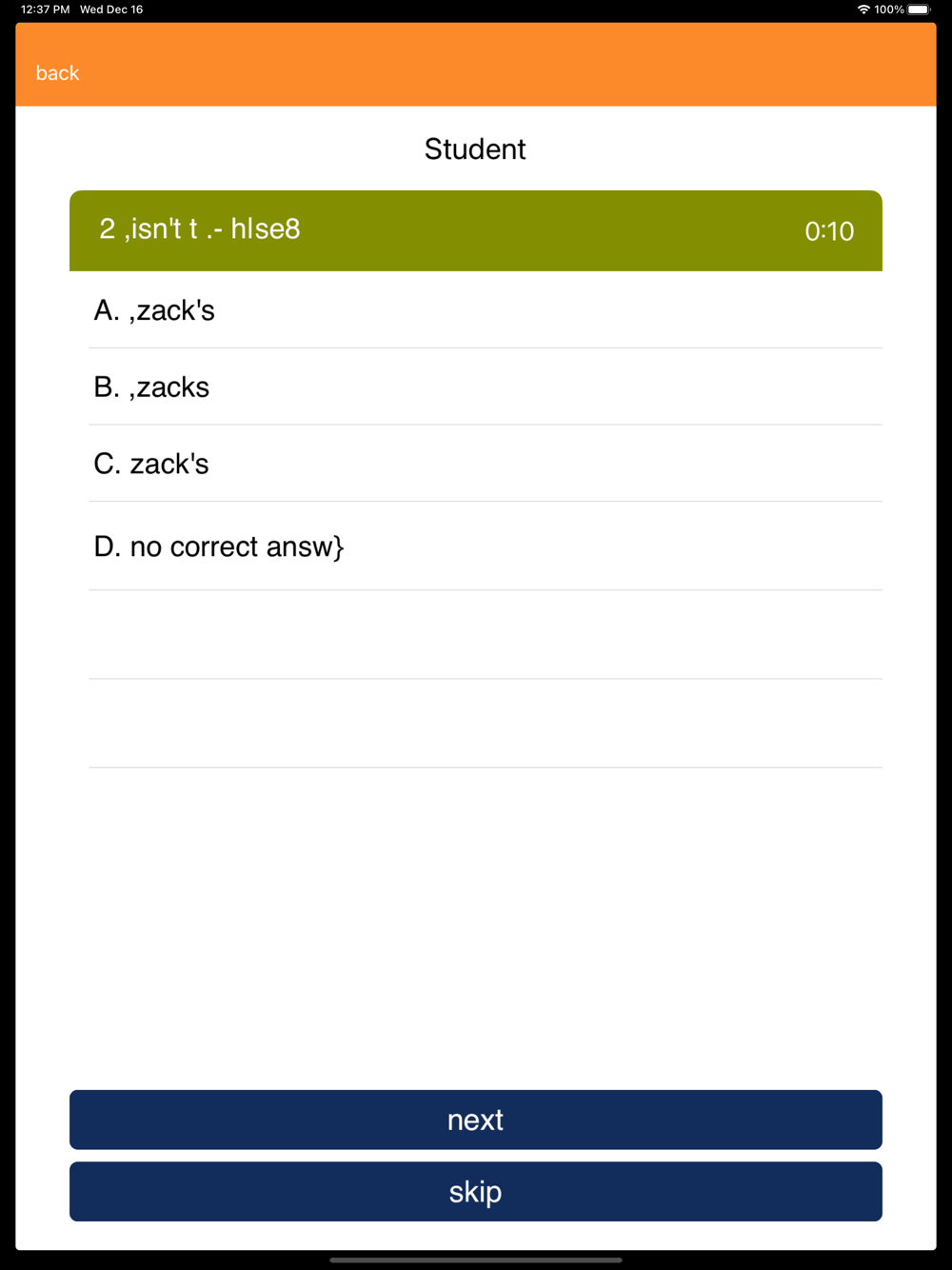 To accommodate for differences within grade levels, the app is structured to include five age groupings and several levels as follows.