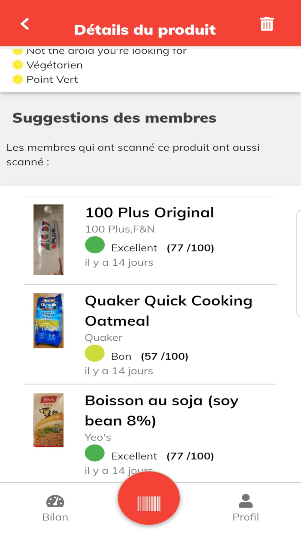 Finally, for all products rated "Bad" or "Mediocre", Kawi suggests products rated "Good" or "Excellent" that other users with the same tastes than you have already scanned.