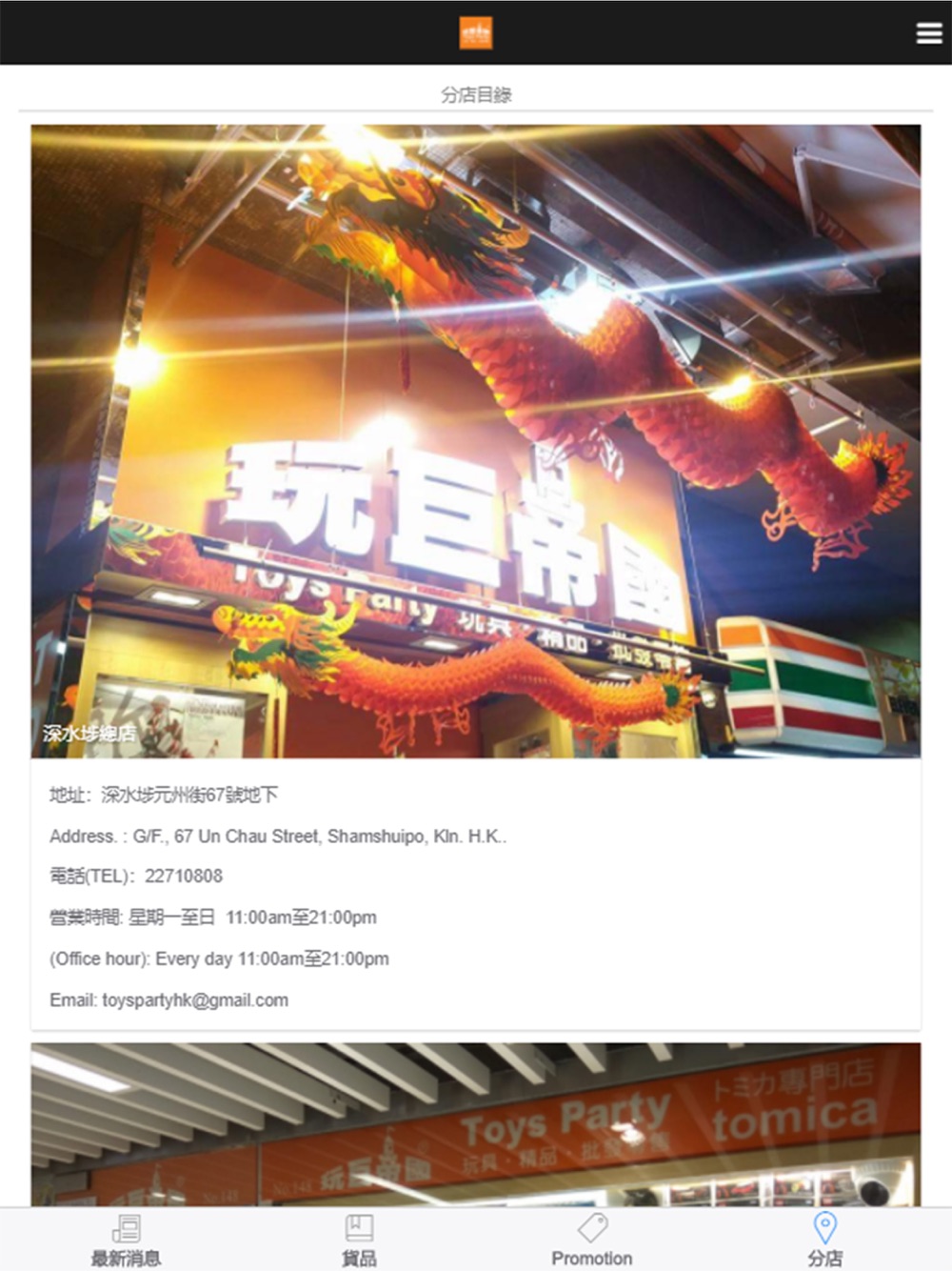 透過此手機App,隨時掌握“玩巨帝國”最新資訊,如Tomica、Tomytec、爆旋陀螺、高達、各類玩具及精品等,亦可透過購買指定商品,獲取電子印花!