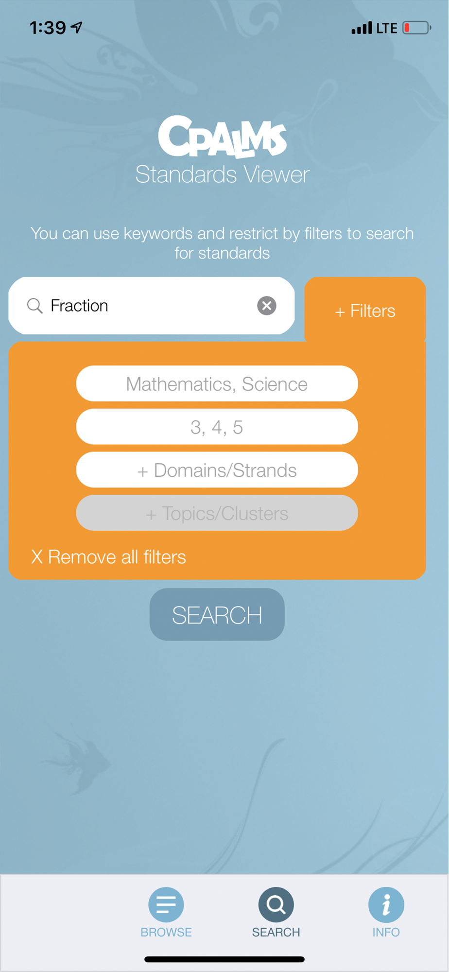 Explore Florida’s Standards directly from CPALMS! This is a great reference for educators, parents, and students to easily access and understand the standards. You can easily browse the standards by subject, grade, domain, and cluster or use the search function to lookup certain topics across multiple grades and subjects. Also included are all the related Access Points, links to related vetted CPALMS instructional and educational resources, and much more. The information in this app is updated live from CPALMS so you always have the latest information. Our user helpdesk can be reached from within the info section of the app.