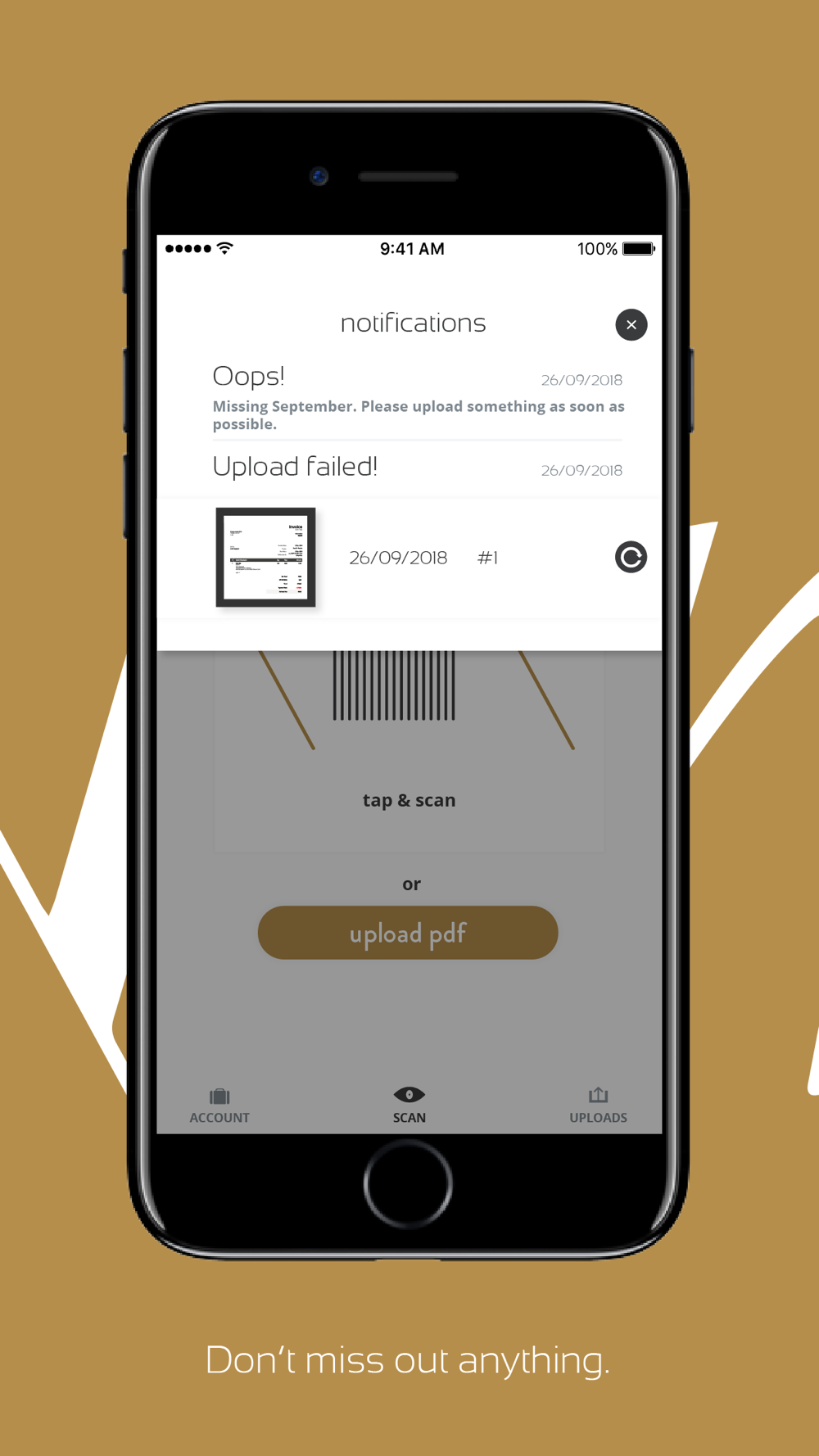 Upload your files with one touch, easy and direct entry of documents, receipts, bills of exchange and other documents without delays.