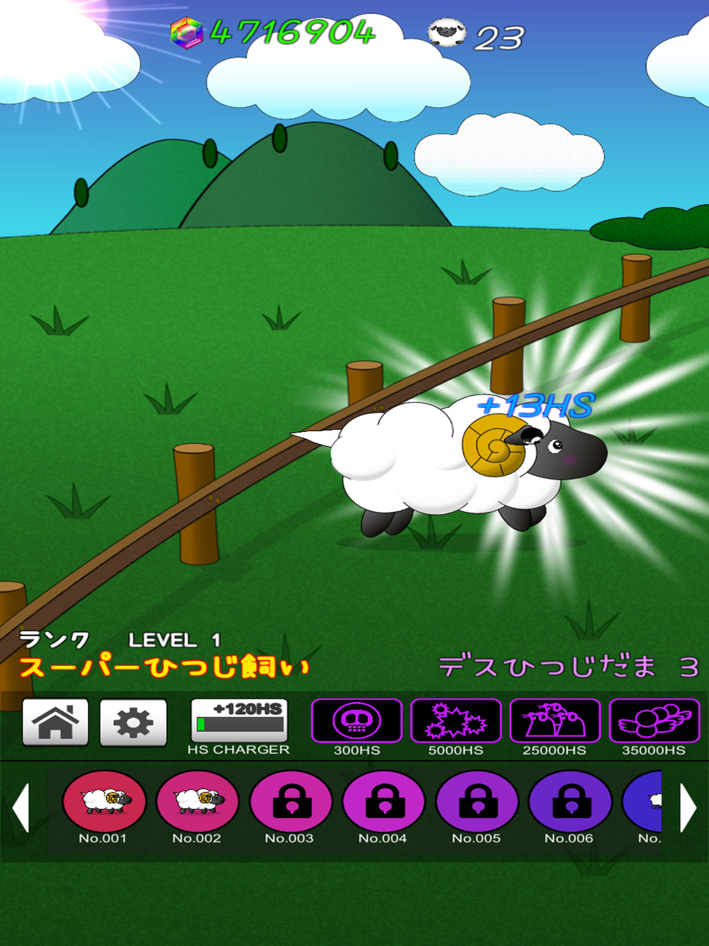 これだけでも夜なかなか眠れないかたにとっては十分満足できますが、本当に面白いのは画面上に現れたひつじさんを「ひつじだま」でゲットンしたり、ガチャガチャでゲットンしたりすることです。