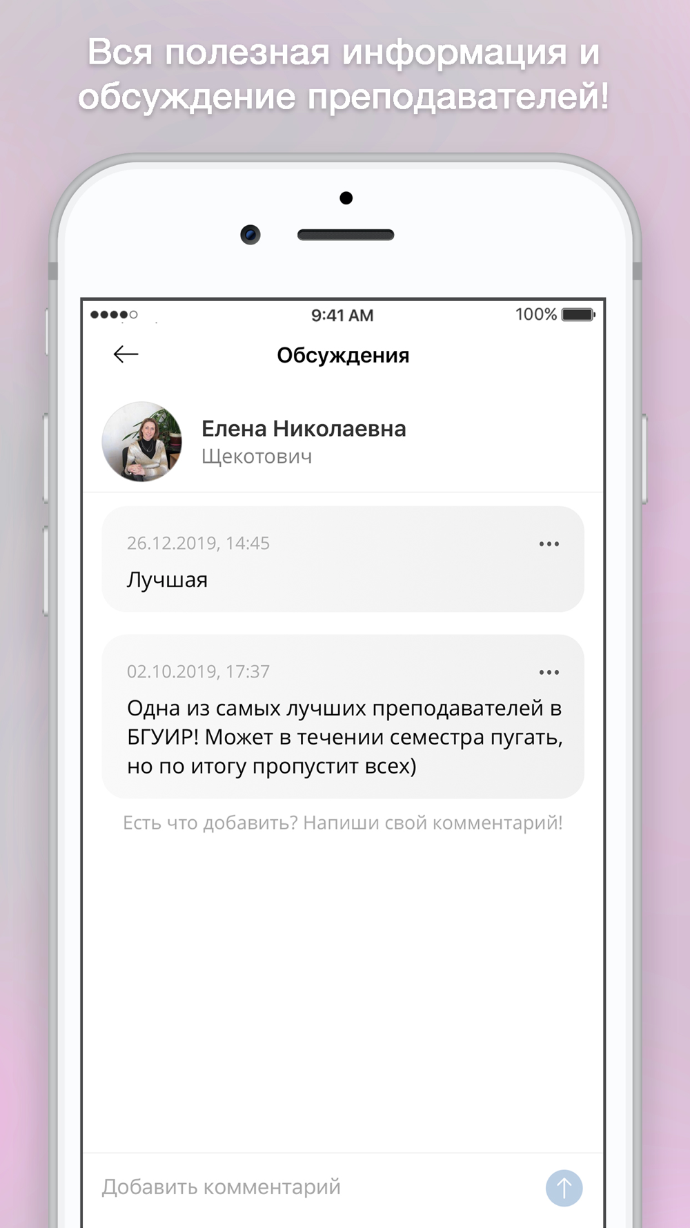 Приложение позволяет в простой и понятной форме просматривать расписание занятий студентов и преподавателей БГУИР.