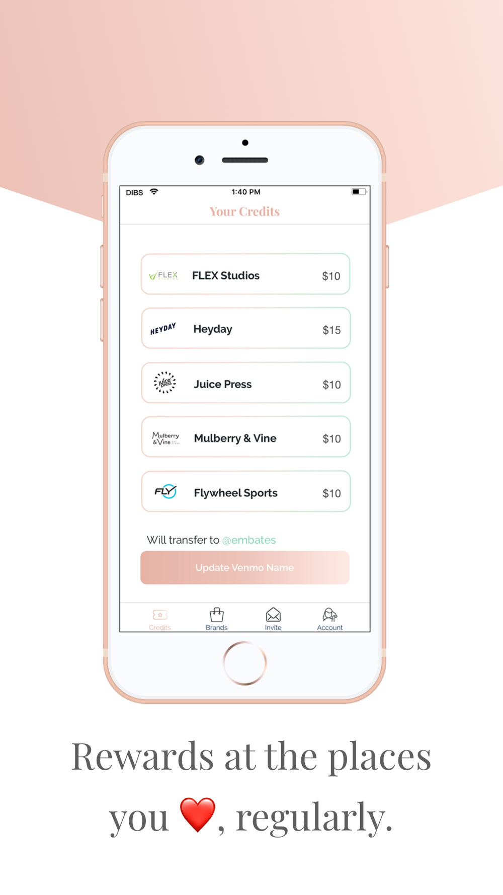 Use Dibs to earn credit towards places you know and love going to. Like to work out? Grab coffee or juice? Get a facial? On Dibs, you can earn credit towards your next one.