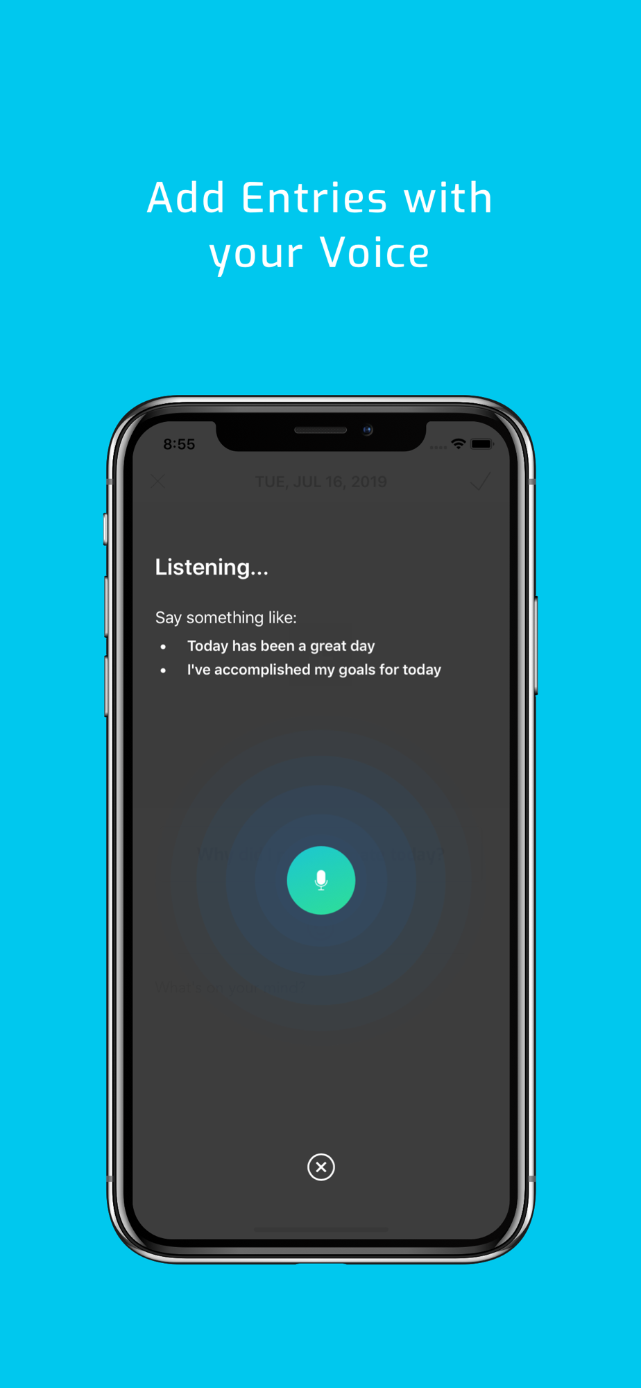 • Add entries with your voice, speak into your diary and it'll convert your voice to text
