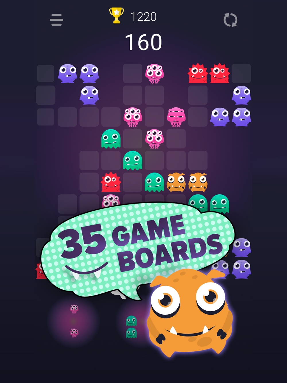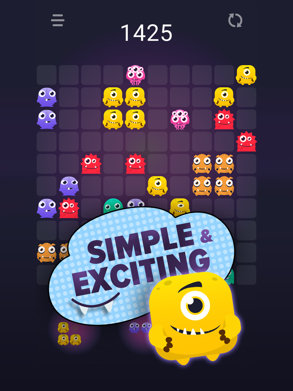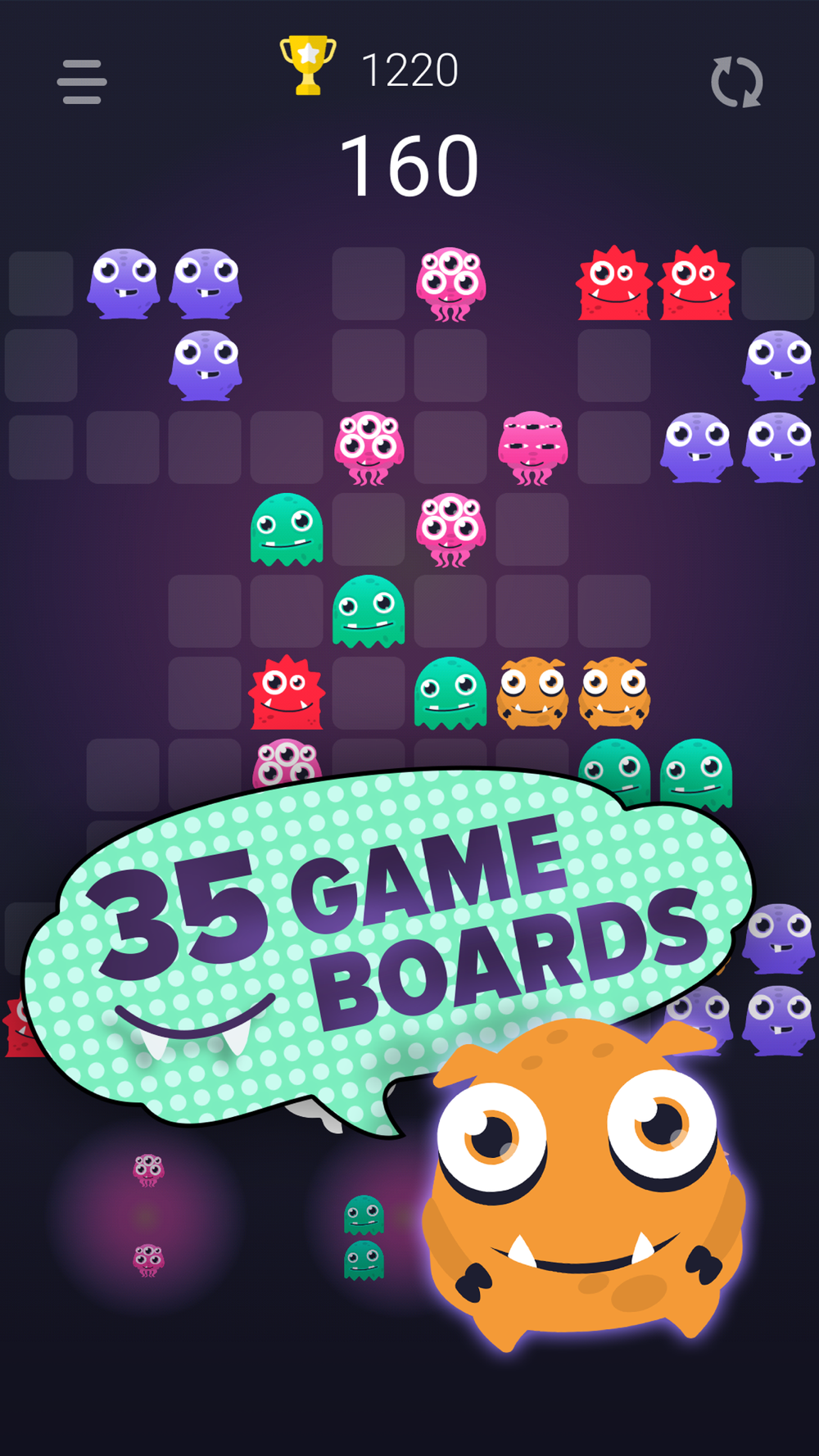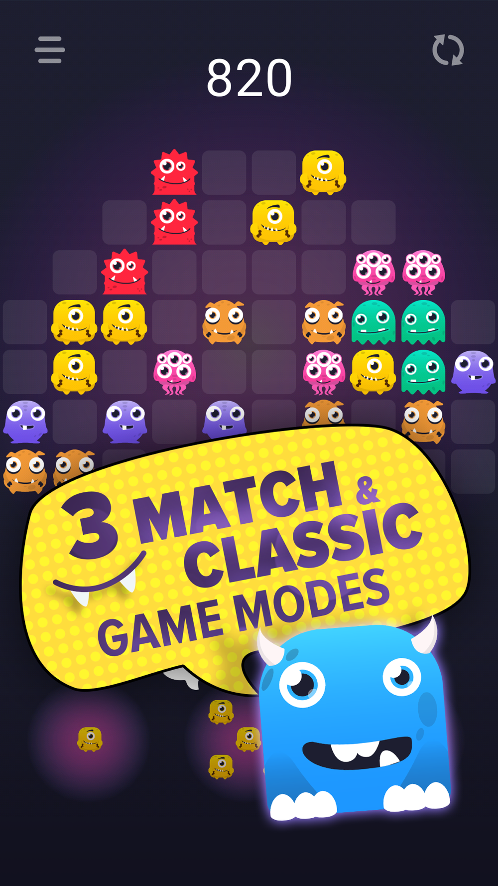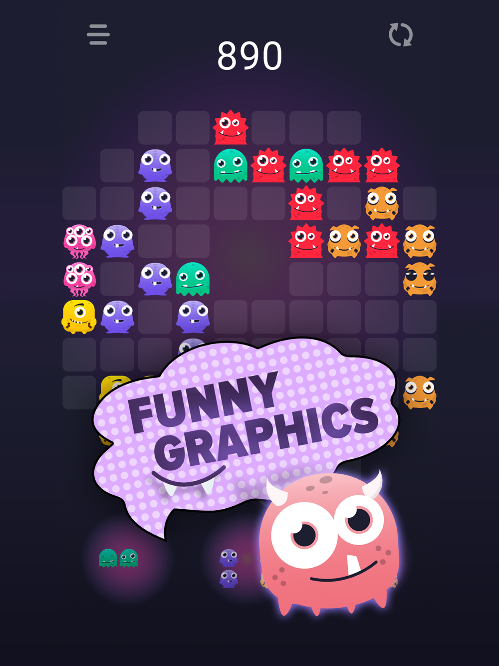 Monstro Puzzle Match 3 - Fascinating, fun, relaxing block puzzle game with monsters. The game works without the Internet connection, it's free, has no time limit and has two game modes. Suitable for all ages, both for adults and children. The game is very addictive!