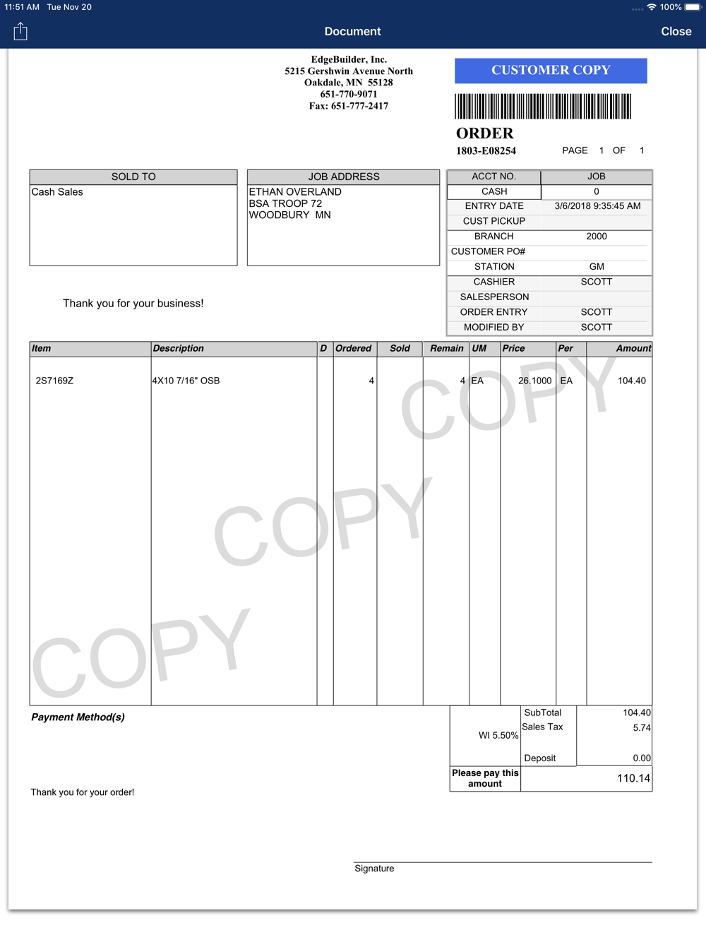 Shop, view documents and check your Glenbrook Lumber account from your Apple device.