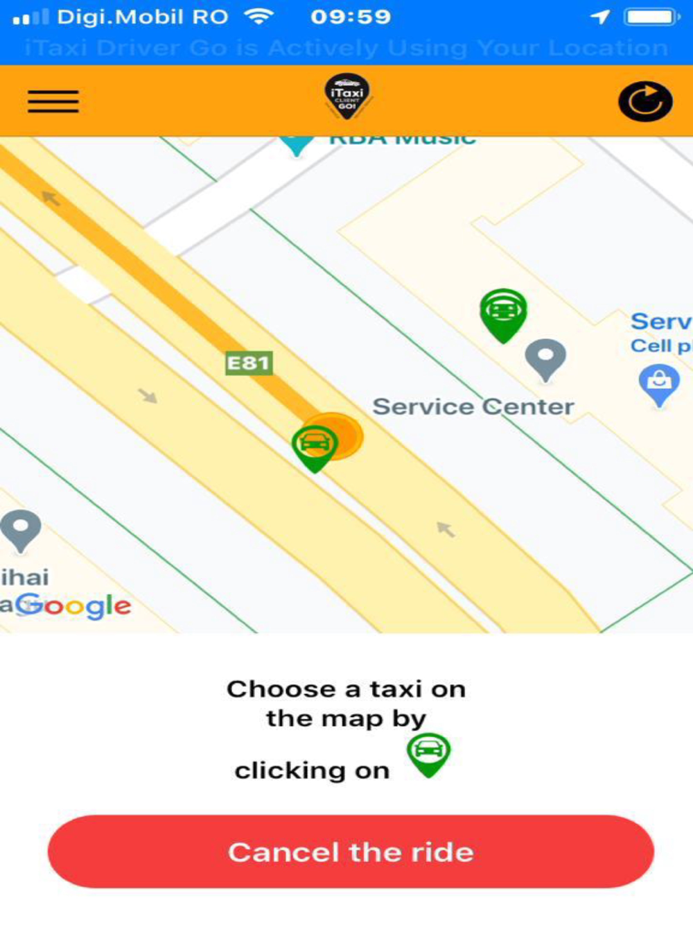 The customer chooses the available car and he can see before placing the order the car model, the year of manufacture, the taxi company and / or the driver's picture and the driver's ability to accept cash or card payment.