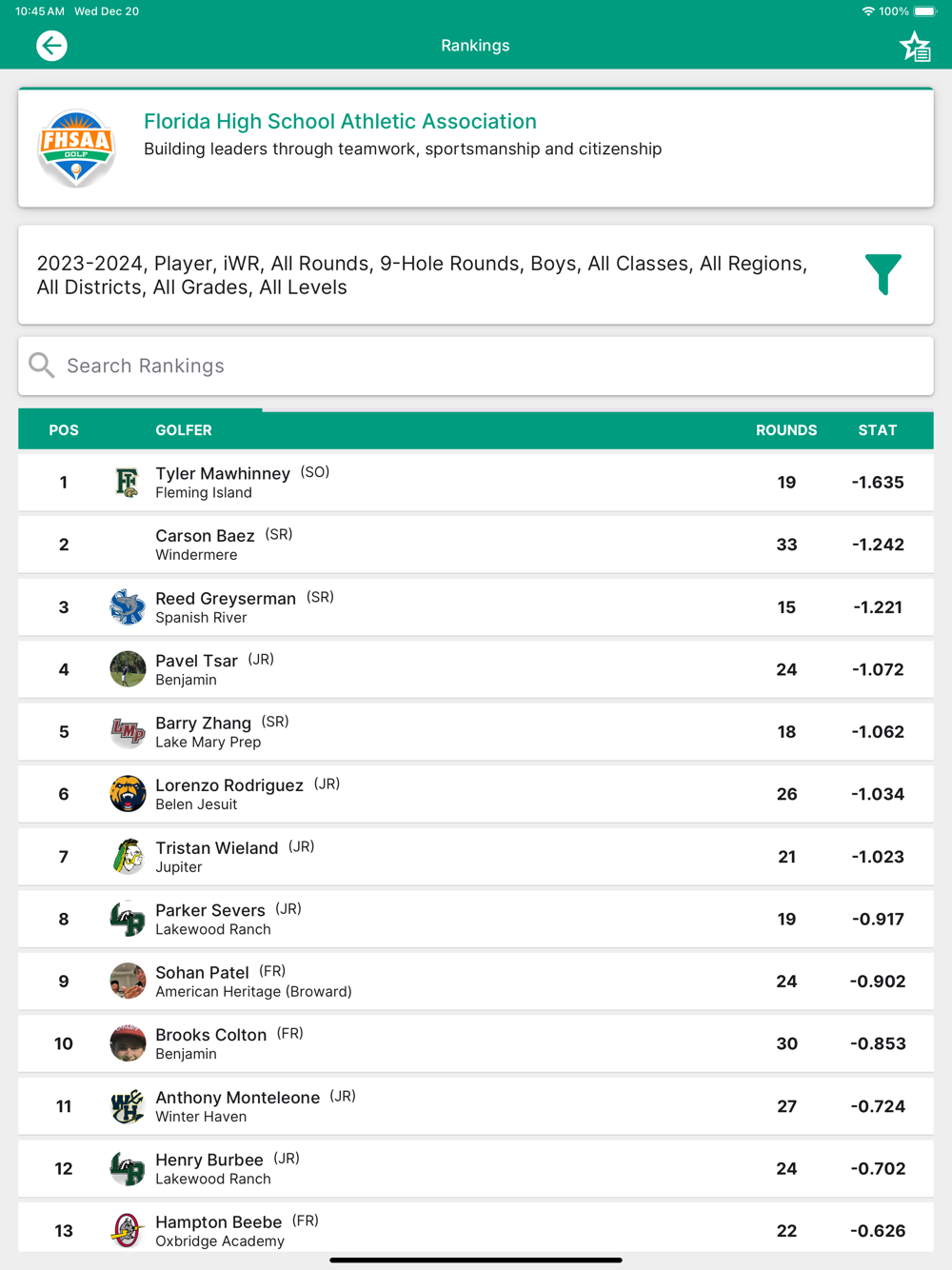 The FHSAA (Florida High School Athletics Association) Golf App combines mobile and desktop application technology to allow golfers to view live leaderboards during events and tournaments. On game day, just enter your scores into our easy-to-use scoring interface to let spectators and competitors keep track of your round in real time.